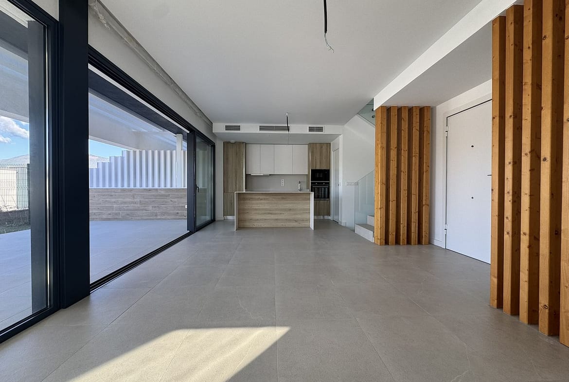 Brand-new contemporary 4-bedroom semi-detached townhouse located in the exclusive Atalaya Golf area, perfectly positioned between Marbella and Estepona. This never-before-lived-in home features a private driveway with parking, a stunning open-plan living space with a fully equipped modern kitchen, three bedrooms and two bathrooms on the main levels, plus an additional en-suite bedroom in the basement. The bright and spacious living room opens onto a west-facing terrace and private garden, ideal for enjoying the afternoon sun. A spectacular rooftop solarium offers breathtaking mountain views, creating the perfect setting for entertaining or relaxing. Within walking distance to local amenities, this property represents a unique opportunity to own a stylish modern home in one of the Costa del Sol’s most sought-after locations.