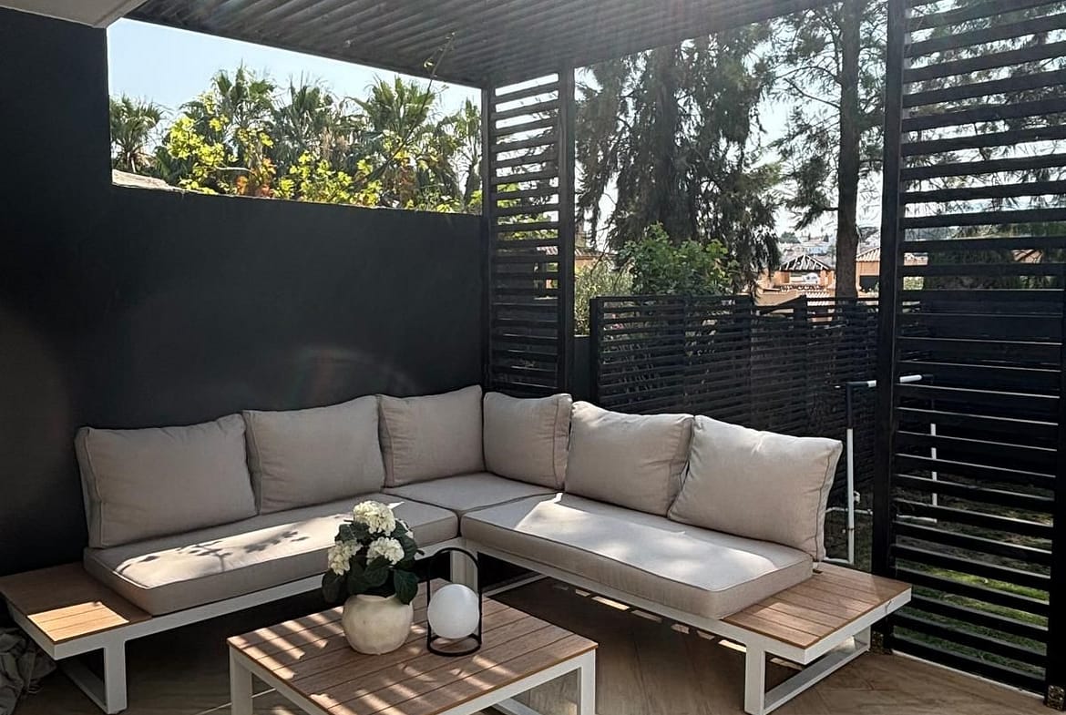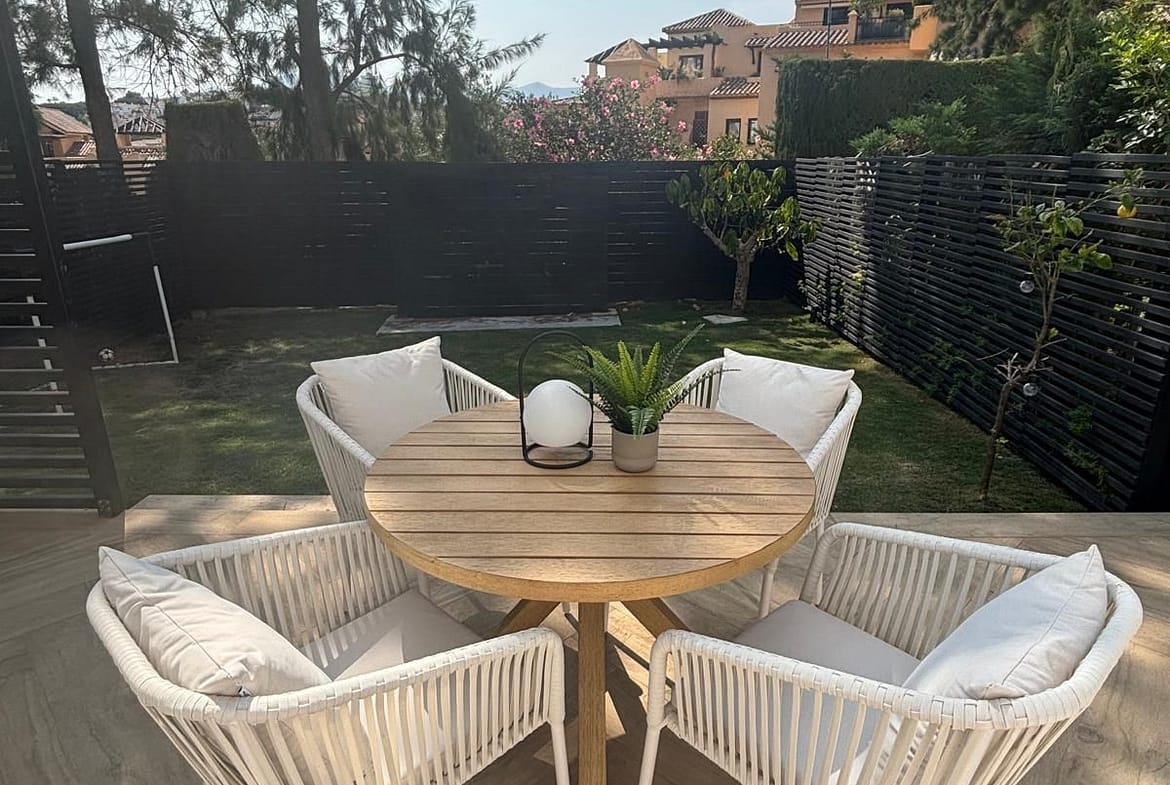 Located in the secure gated community of Señorío de Cortes, between Estepona and Marbella, this beautifully renovated townhouse
