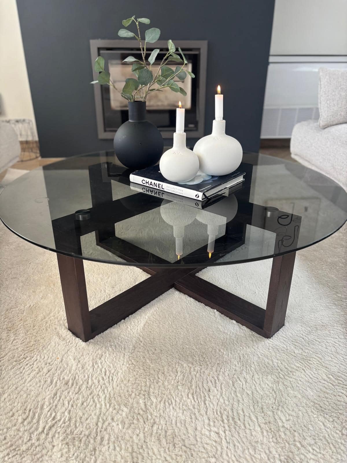 The main level offers a bright open-plan living and dining area with beautiful flooring, designer fireplace and large glass doors opening