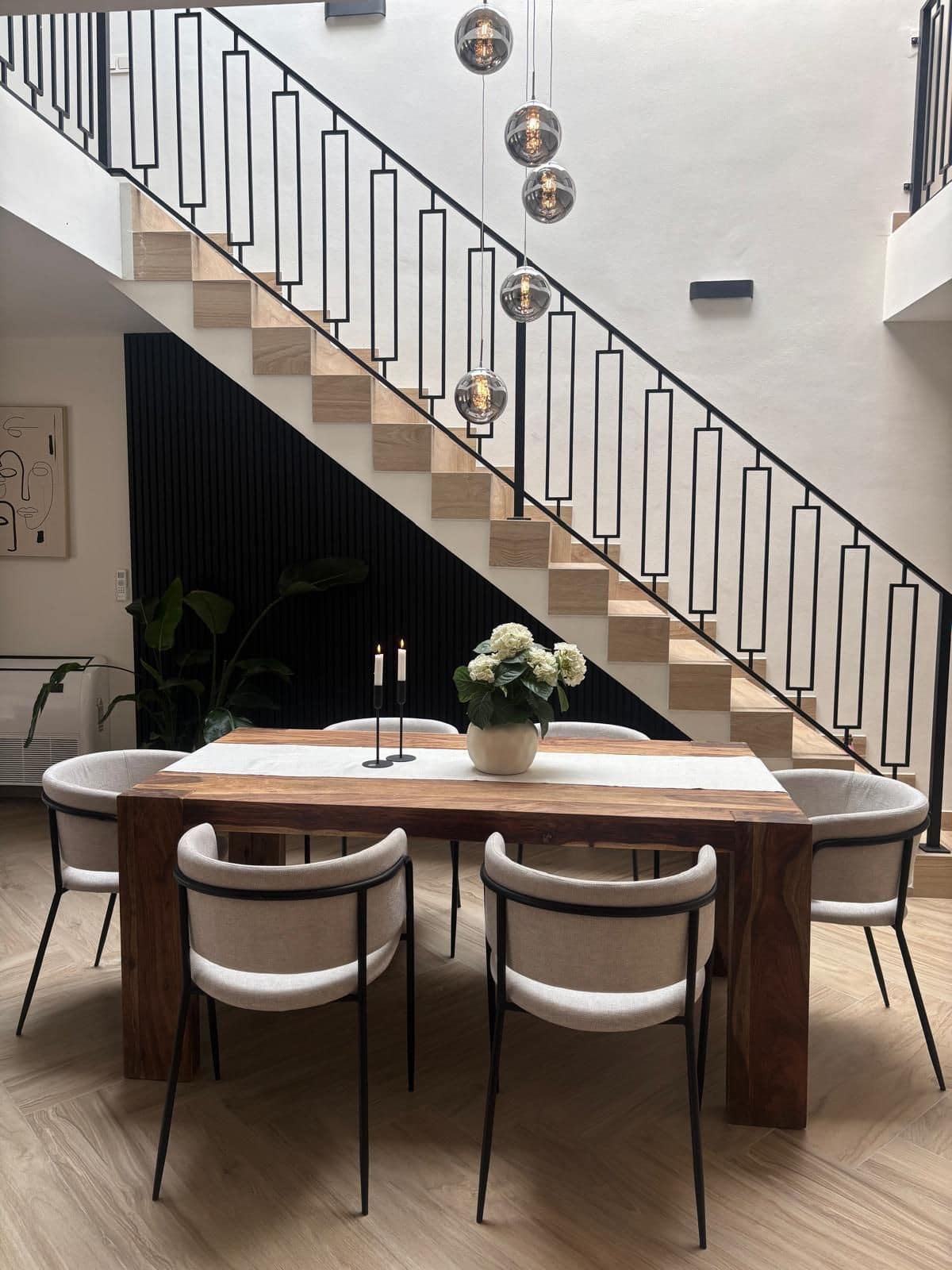 Upstairs you will find three spacious bedrooms, all with en-suite bathrooms, including a master suite with private terrace.