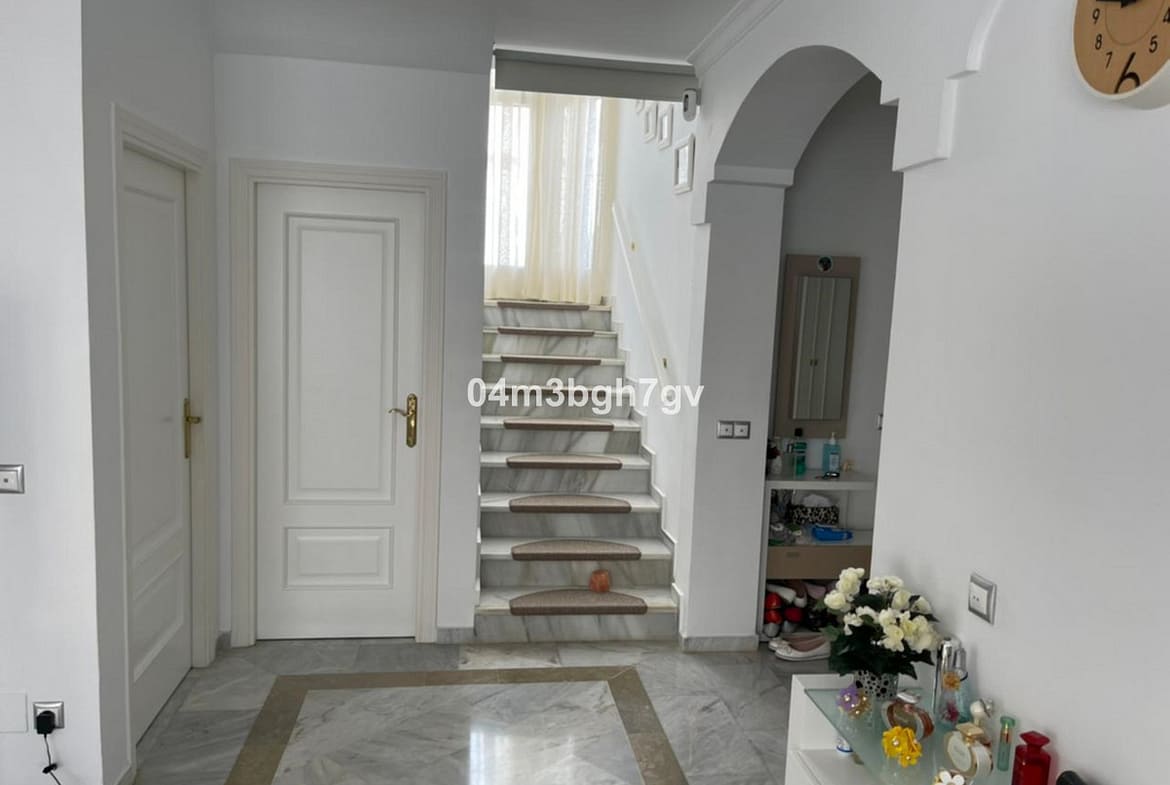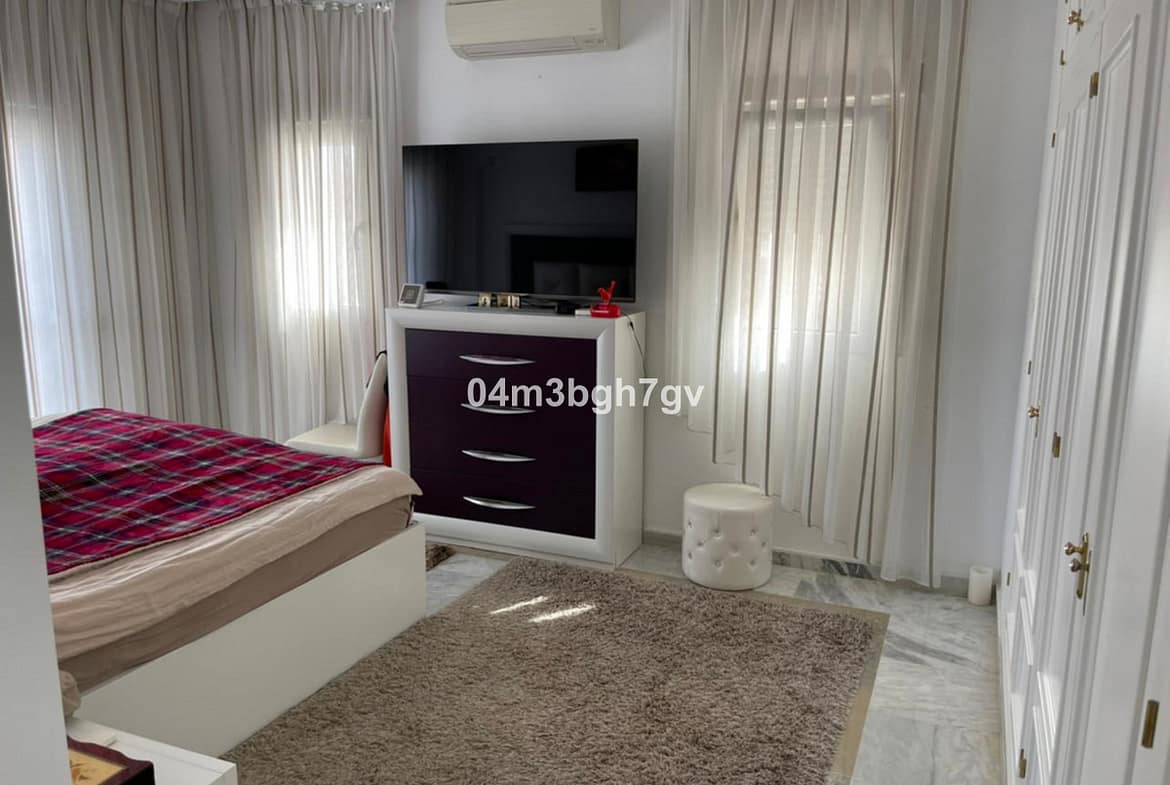 Wonderful villa just 800m from the beach, located in the privileged area of El Paraíso (New Golden Mile). This fantastic property has 4 bedrooms, one of the bedrooms is on the ground floor. The villa has 3 bathrooms, a large living room with fireplace, a fitted kitchen and a 421 m2 fenced garden with fruit trees. The property has great character, ideal for families or as a holiday home. there is a parking space. the villa is located in a small gated community with security consisting of 9 houses with a common area for recreation and swimming pool.”