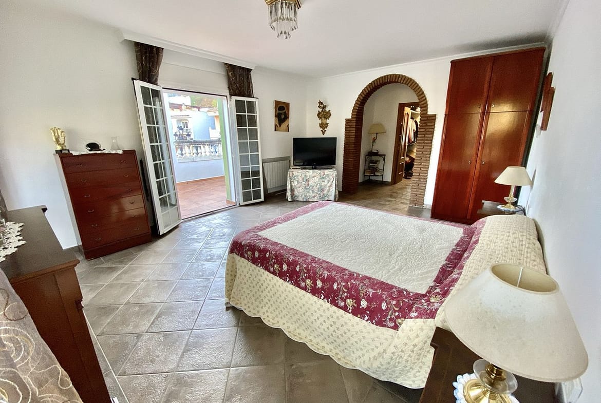 The upper floor, accessed via the entrance staircase, contains the master bedroom with travertine marble bathroom, dressing room and large terrace with the best views of the house.