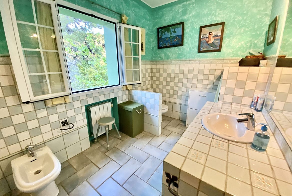 The ground floor, which is accessed via another staircase in front of the entrance of the house, leads to the garage, storage room and a total of 200 sqm of unfinished habitable basement with direct access to the private garden with fruit trees.