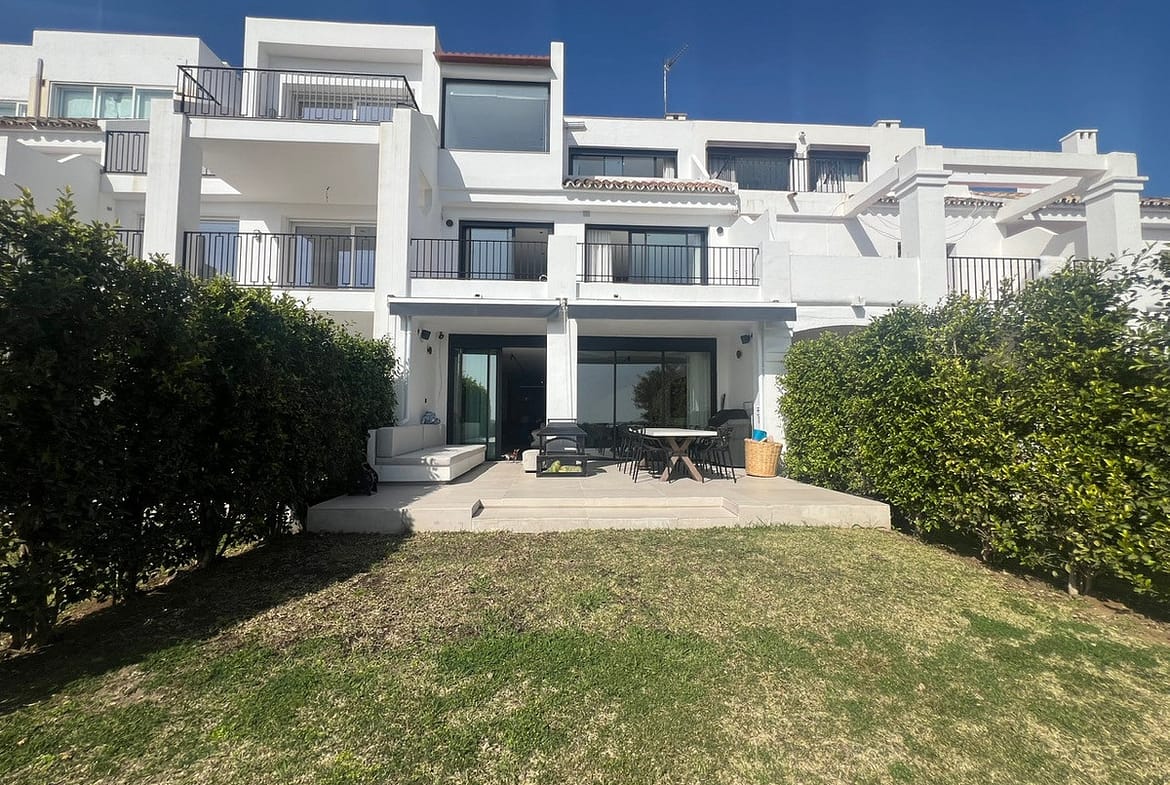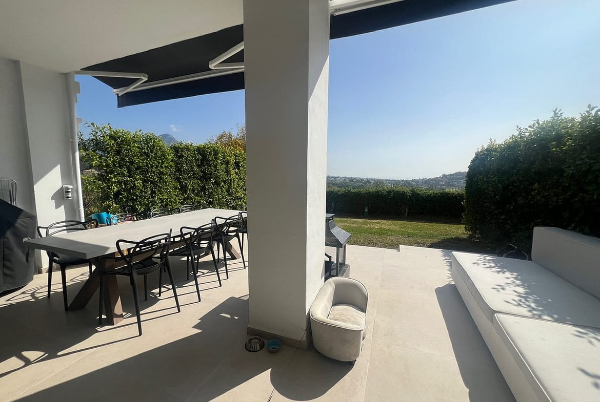 Located in the prestigious La Quinta Golf, this beautifully renovated townhouse offers breathtaking sea, golf course, and mountain views from every level. Designed for modern luxury, it features a bright open-plan living space, a sleek Barazza kitchen with a central island, and a stylish bioethanol fireplace. Floor-to-ceiling sliding doors lead to a spacious terrace, perfect for al fresco dining and relaxation.