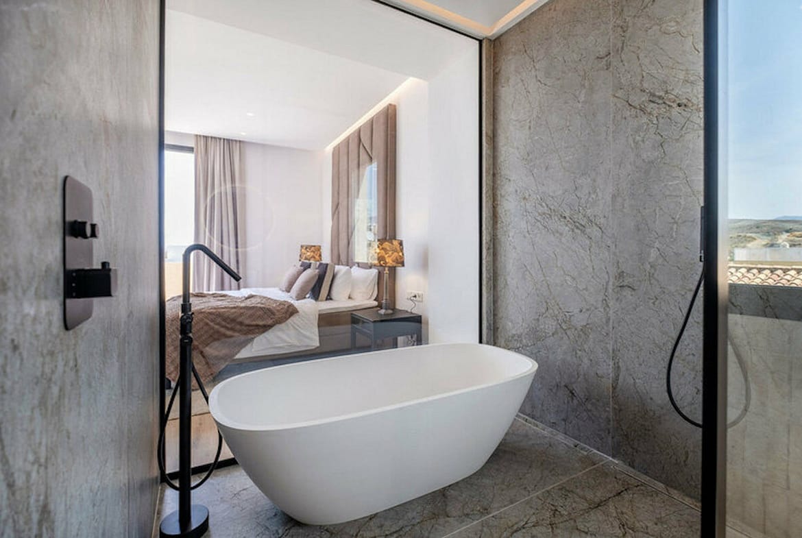 This property’s outdoor spaces are as inviting as its interiors. The covered terrace leads to a landscaped garden and features an infinity pool that enhances the panoramic sea views. Integrated sunbeds provide an ideal spot for soaking up the Mediterranean sun, while a sundeck, pergola, BBQ area, and chill-out spaces create a perfect atmosphere for social gatherings or peaceful relaxation. As the day winds down, the sunset terrace offers an ideal setting for movie nights under the stars with its unique moonlight cinema.