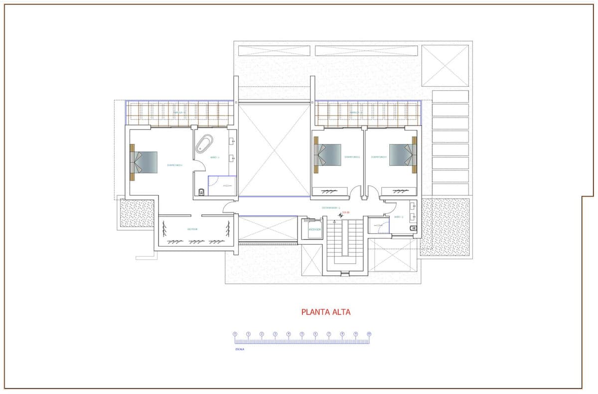 First floor; lift, master bedroom with ensuite bathroom, dressing, and private terrace, a further 2 bedrooms that share a bathroom and each with a terrace.