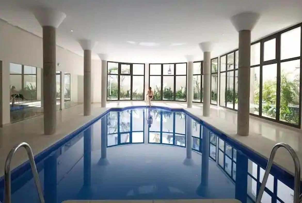 Step outside to discover a private patio and an enticing outdoor pool, perfect for relaxation and family gatherings. Additionally, take advantage of the shared amenities, including a well-maintained gym, rejuvenating spa, and high-speed Wi-Fi connectivity for your entertainment needs. Unwind with your favorite shows on Netflix after a day of exploring the nearby golf courses, with Golf La Duquesa just 38 km away and Campo de Golf La Cala at a convenient 50 km distance.