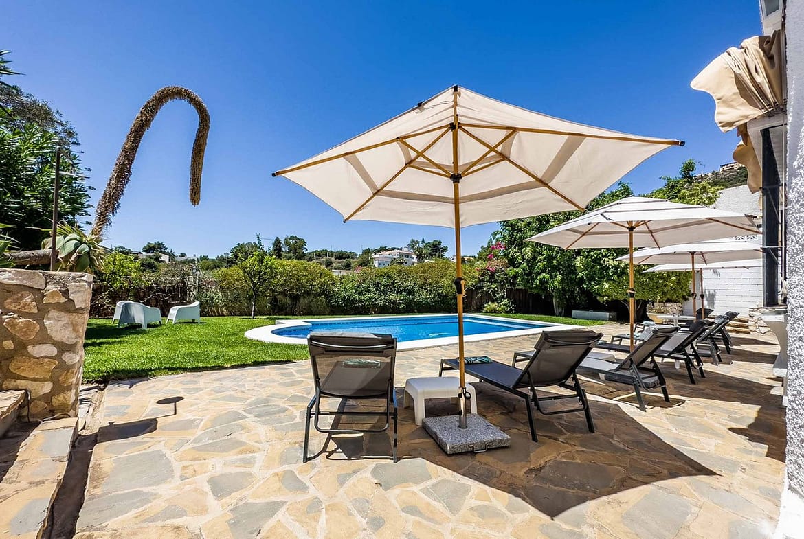 We are pleased to present this marvellous 4 bedroom 3.5 bathroom detached villa in the classic Andalucian style, constructed in 1988 & recently renovated to the highest standards. The property boasts mature gardens with both covered & open seating & dining areas, as well as a dedicated barbecue area, perfect for enjoying the wonderful climate and the sea & mountain views. The location is excellent, being a 5 minute drive from the beaches & Benalmadena Pueblo. The villa has parking for at least 4 cars, a large private pool, a solarium with magnificent views & 2 seating areas, bar, barbecue area, storage sheds, & trampoline. Entering on the upper level through the hall, we find an ample lounge with fireplace with access to the covered terrace, kitchen, dining room, & guest toilet. On the lower level there are 4 double bedrooms & 3 bathrooms, 2 of which are ensuite, & 2 with access to the pool and gardens.