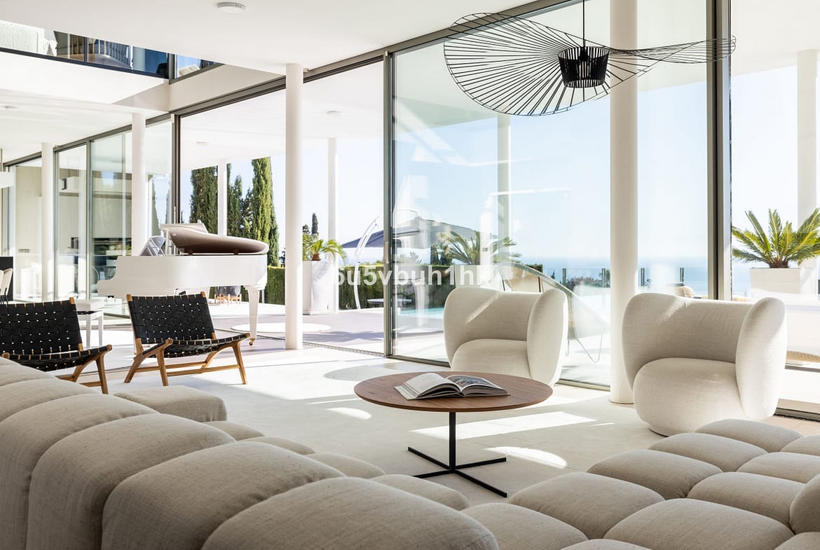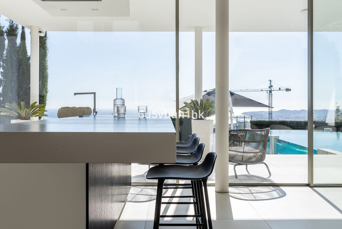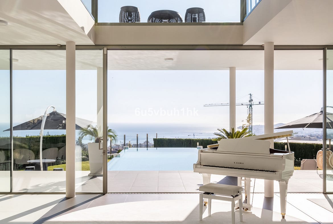 One of the villa's most striking features is the infinity pool that seemingly merges with the Mediterranean horizon. Whether you're taking a refreshing dip or lounging on the expansive terrace, the panoramic views of the Mediterranean and Fuengirola are simply breathtaking. The fully glazed terrace provides comfort for enjoying the outdoors all year round.