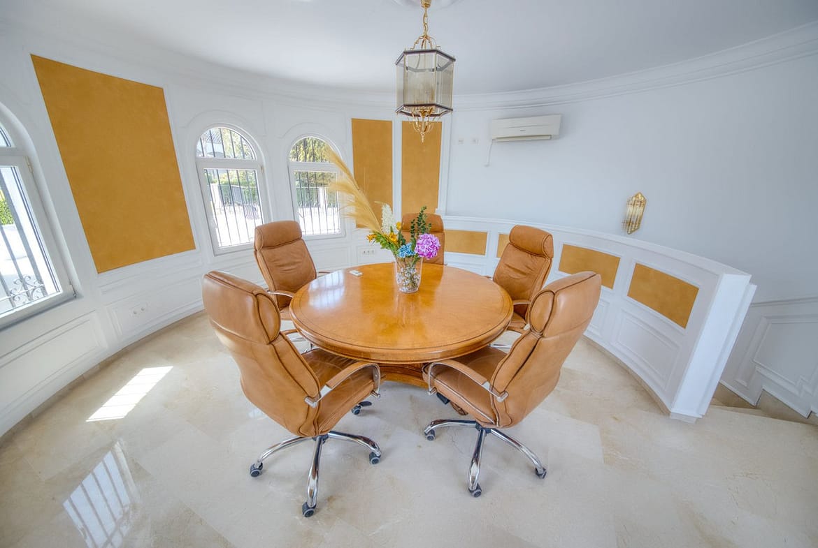 The villa consists of 3 bedrooms, 3 bathrooms with access to a 4th room which has the potential to be used as you require. With a build size of 454m2.