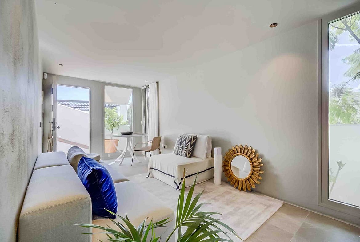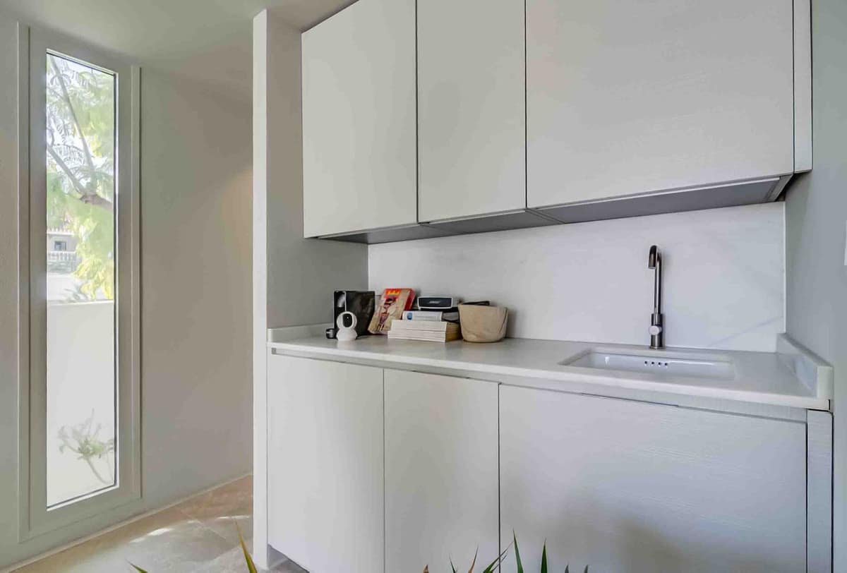 The main house features a bright and spacious living area with large windows and direct access to the sunny terrace, where you can enjoy uninterrupted sea views and the warm Andalusian light throughout the day. The modern, fully fitted kitchen is designed for both aesthetics and functionality, making it ideal for homeowners who enjoy cooking and entertaining.