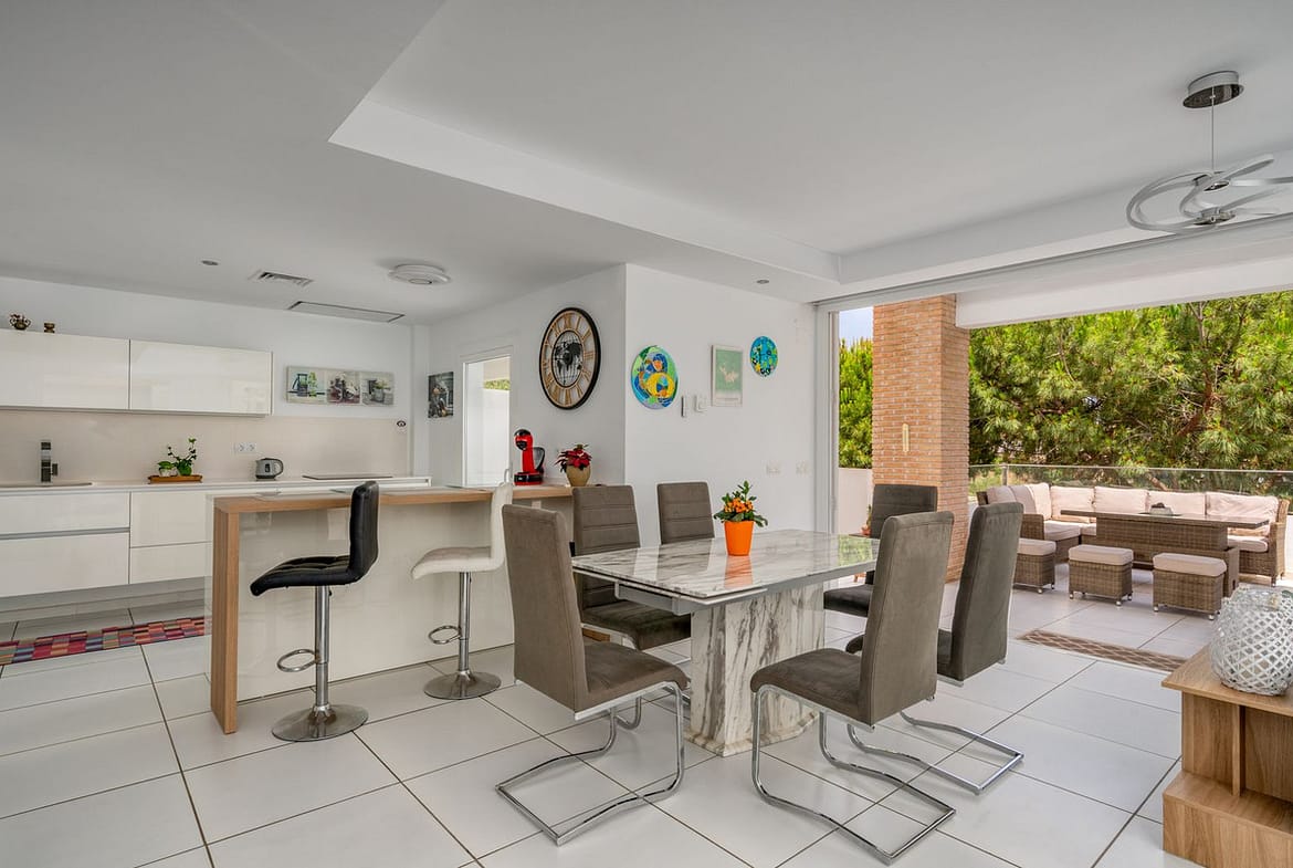 The surrounding area features green spaces and convenient access to local services. The property is located in the Torremuelle neighborhood, a purely residential area five minutes from the beach and the train station, and literally a stone's throw from the British School international school. The beach is a seven-minute drive away, and the area is well connected to local services and transportation links.