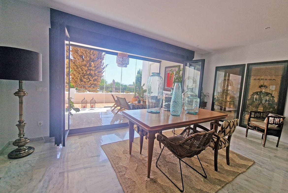 This beautifully renovated property in Calahonda is truly one-of-a-kind, offering panoramic views of the sea, golf course, and mountains. Thoughtfully restored with exquisite taste and meticulous attention to detail, this home blends elegance, comfort, and functionality in a way that is rarely found on the market.