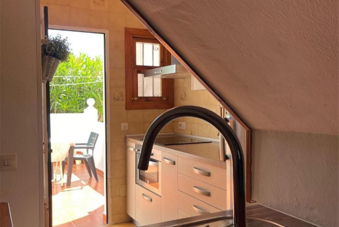 After walking through the garden and entering the property you will find a comfortable living room with a fireplace. This room is very well lit and ventilated. The kitchen, on the other hand, is in an independent space, fully furnished and gives access to the east-facing terrace.