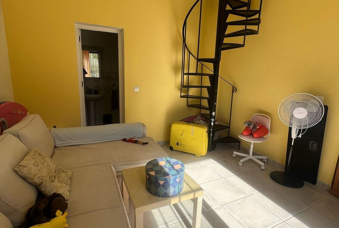 separate studio which has a lounge area and bathroom which is large enough to included a small kitchen, leading up a spiral staircase there is another bedroom with terrace and a further roof terrace with views