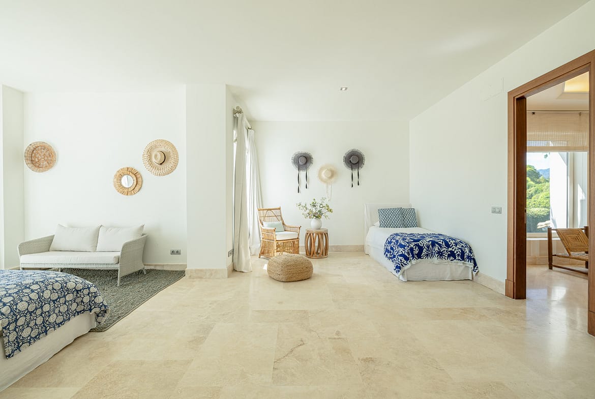 Set within the world-renowned Finca Cortesin resort, this remarkable south-facing villa represents a rare opportunity to experience the very best of the Andalusian coast’s exclusive lifestyle. Blending timeless elegance, modern sophistication, and authentic Mediterranean charm, this home offers an atmosphere of effortless luxury in one of Europe’s most celebrated destinations. Spread gracefully over two levels, the villa features four beautifully appointed bedrooms, each designed with comfort, privacy, and natural light in mind. The open-plan living spaces exude warmth and refinement, with a bespoke kitchen, bright dining area, and inviting lounge centered around a cozy fireplace—perfect for relaxed evenings or elegant entertaining. Stepping outside, you’re greeted by meticulously landscaped gardens and a private swimming pool, creating a haven of tranquillity framed by lush greenery and panoramic southern light with partial sea views. A private carport with parking for two cars adds convenience to the home’s understated elegance.