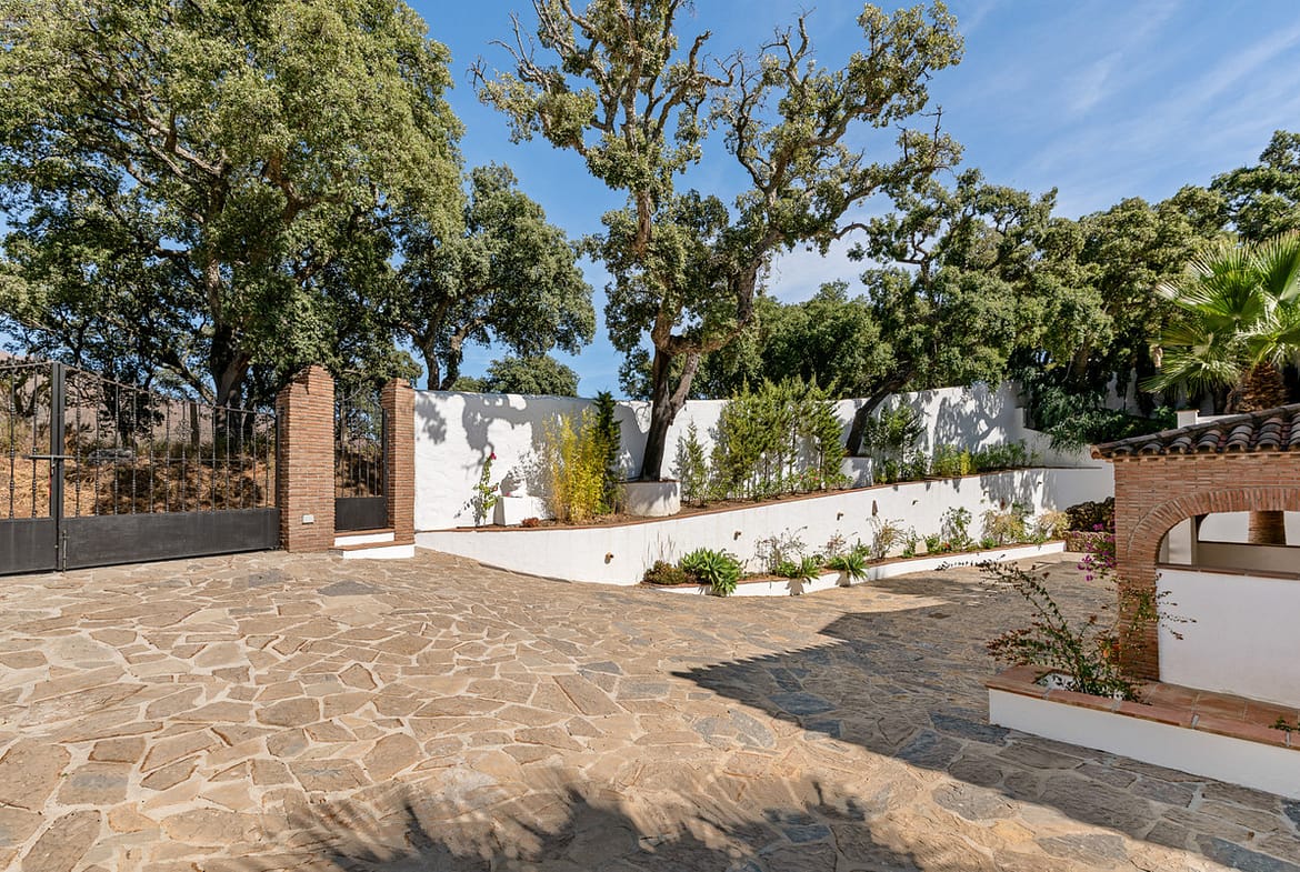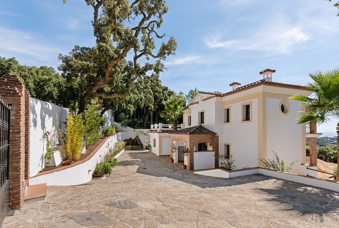 The property is five minutes from Casares village and 20 minutes from the coast. Sotogrande is 30 minutes away, Marbella 35 minutes, and Málaga Airport about one hour.