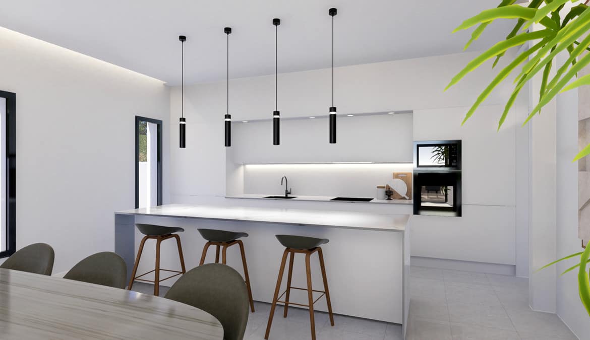 This modern and spacious villa is all on one level, with a built area of 200 m² plus a terrace and a large covered private parking area. The large energy-efficient windows allow you to enjoy the stunning views over the golf course and the surrounding area, while bathing all bedrooms and the open-plan living area in abundant natural light. The rooms lead directly out onto the terrace, where you can enjoy the landscaped garden and your private swimming pool.