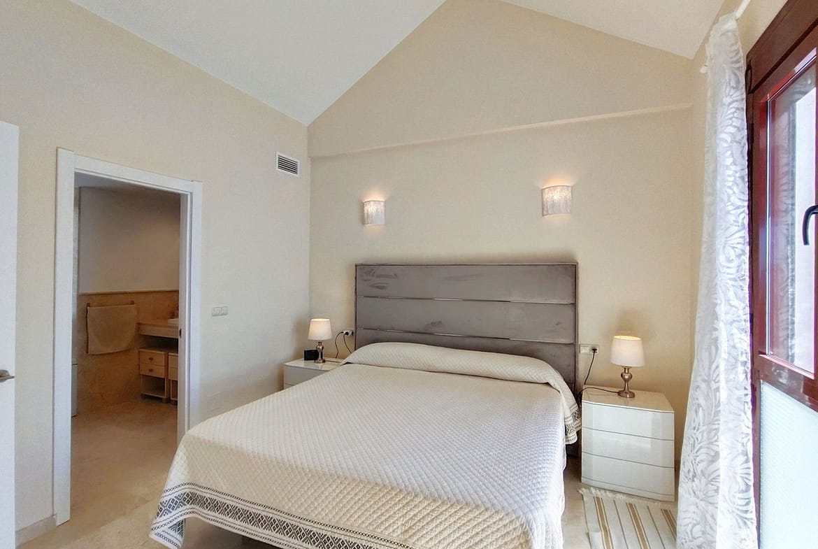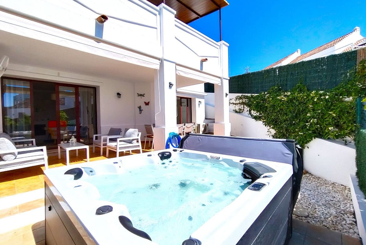 Located next to the Finca Cortesín Golf Course, one of the most prestigious golf courses in Spain, it has hosted numerous high-profile events, including the Volvo World Match Play Championship three times and the 2023 Solheim Cup. Just a 7-minute drive from the beach and San Luis de Sabinillas with its picturesque Puerto de la Duquesa. Between Estepona and Sotogrande, both a 12-minute drive away. This house is located on a corner, enjoying a large, south-facing private plot. It is distributed over 3 floors. The ground floor features a spacious, bright living room with a cozy fireplace and access to the large covered terrace, a guest toilet, and a beautiful dining room connected to the open-plan, fully equipped kitchen with excellent finishes and a modern and functional style. On the upper floor there are two bedrooms with en-suite bathrooms. The master bedroom features high ceilings, a dressing area, and beautiful partial sea views. Its bathroom also has a shower and a whirlpool bathtub. The second bedroom has an en-suite bathroom with a bathtub and access to the large covered terrace with beautiful panoramic sea views. On the ground floor there are two large bedrooms, a spacious bathroom with a shower, and a spacious home theater. The outdoor area includes a car access with an electromechanical gate and ample covered parking, a large garden area with the possibility of building a swimming pool, a covered terrace with recently installed awnings, a Jacuzzi area, and automatic irrigation. The house has photovoltaic solar panels, an alarm system and outdoor video surveillance cameras, air conditioning throughout the house, and underfloor heating in the first-floor bathrooms. The house was updated and renovated in 2023, so the kitchen and all non-structural elements of the property were newly installed. GREAT OPPORTUNITY TO HAVE YOUR HOME NEXT TO THE PRESTIGIOUS FINCA CORTESIN GOLF COURSE!!!
