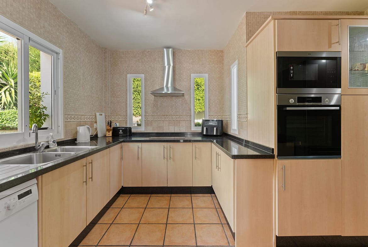 The outdoor space is just as appealing as the interior. The well-maintained garden features multiple seating areas where you can enjoy the sunshine throughout the day, while the private pool and surrounding terraces provide the perfect spot to cool off and entertain friends and family.