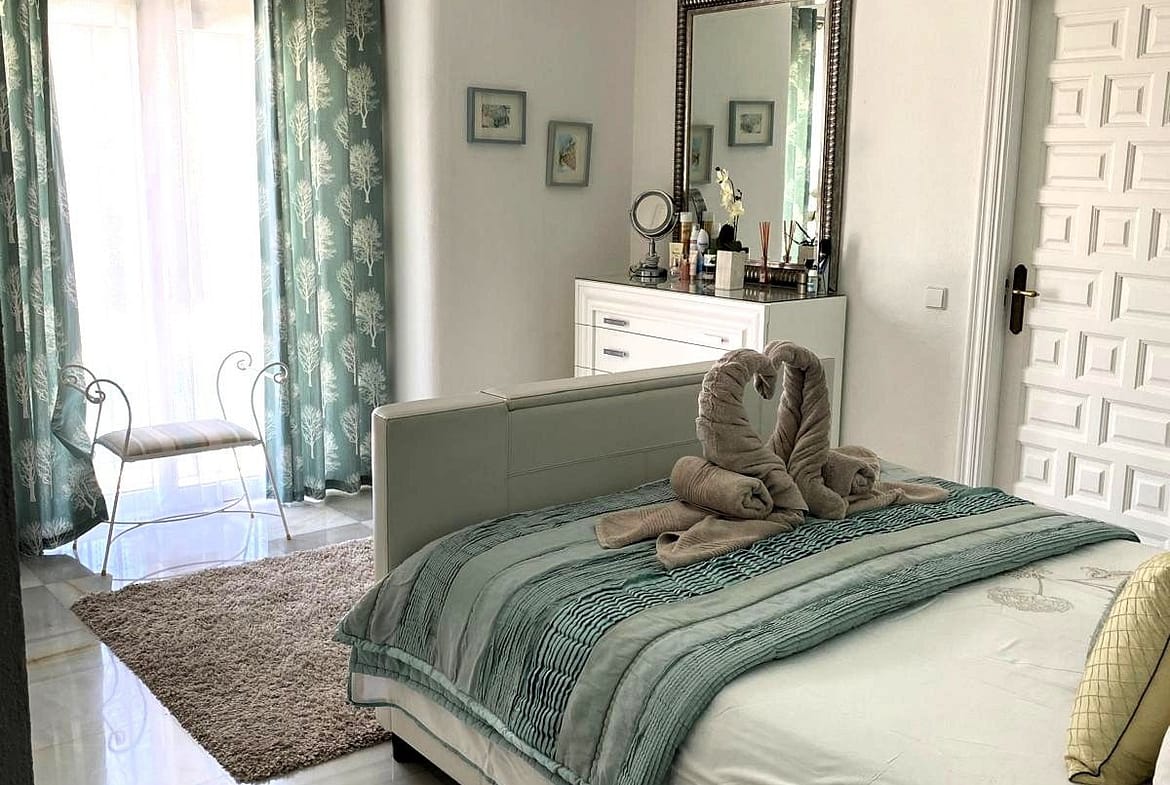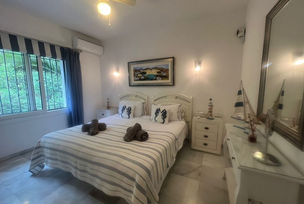 Set on a generous double plot in Paraiso Alto, this fully renovated 4-bedroom, 3-bathroom bungalow offers an exceptional blend of space, style, and scenery. Ideally south-facing, the property enjoys panoramic sea views from the garden as well as picturesque golf course views, creating a peaceful and luxurious atmosphere.