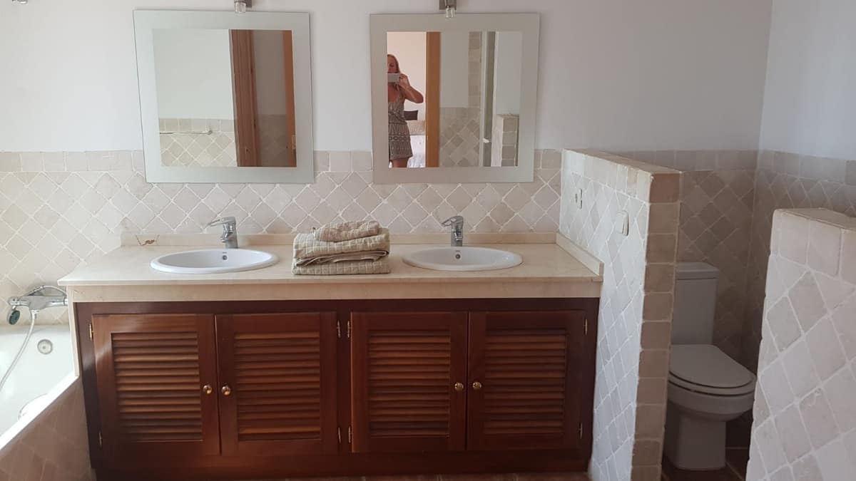 Spanning two spacious levels, the home features a bright and airy open-plan living and dining area, complemented by large windows and sliding doors that flood the space with natural light and open onto a private terrace—perfect for outdoor dining or relaxing in the Mediterranean sun. The fully equipped modern kitchen includes quality appliances, ample storage, and a breakfast bar for casual meals.
