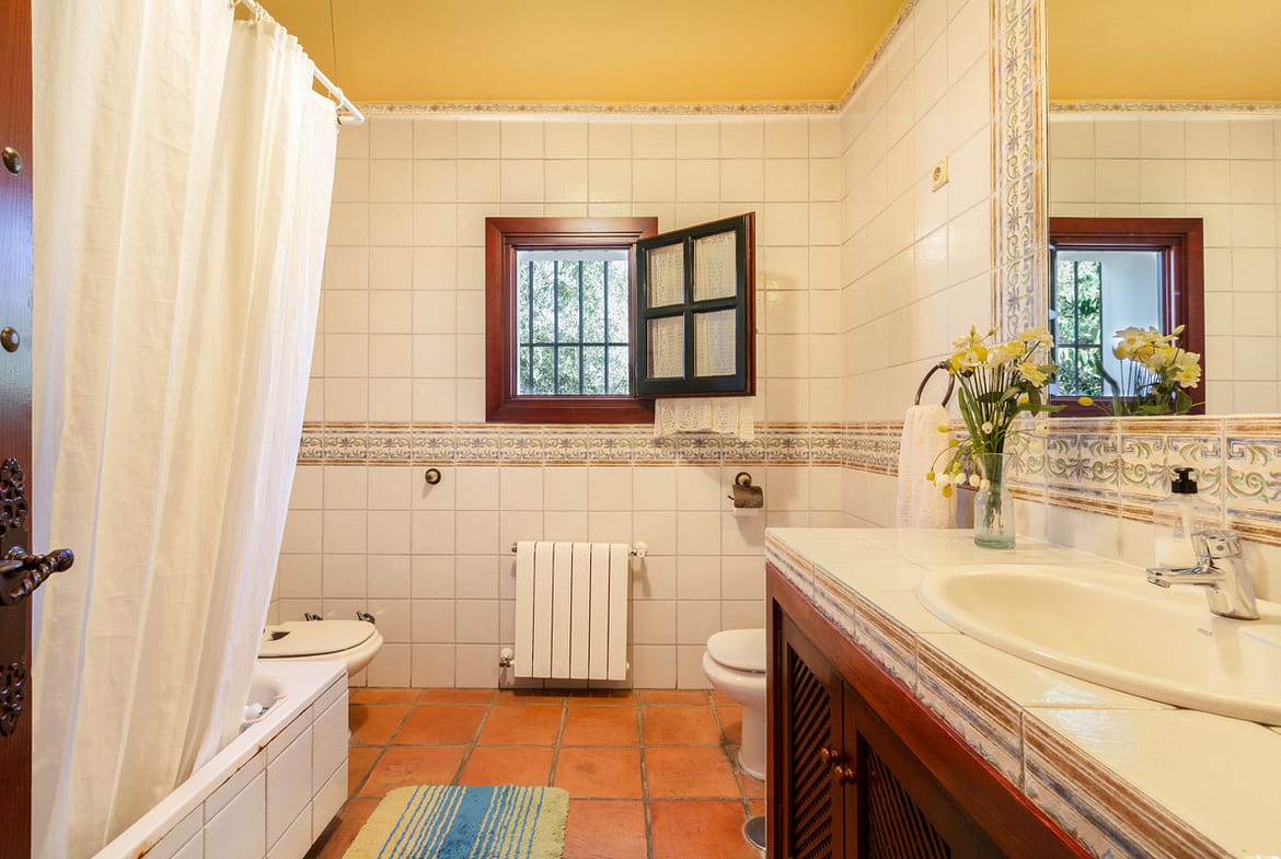 Rustic style villa distributed over three floors, located in a quiet area of Elviria. The property has four bedrooms, two bathrooms and a toilet, a fully fitted kitchen and a spacious living room. It is characterized by its high ceilings, its Andalusian style and the large basement with an area of 200 m2. It also has a garage with capacity for three cars.