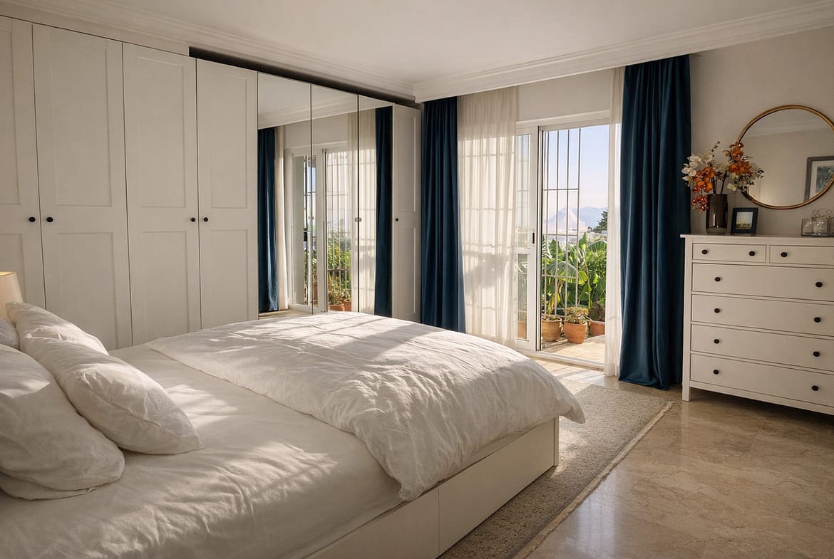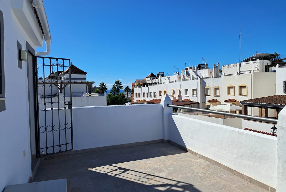 The upper floor offers a versatile space: a spacious fourth bedroom, currently used as a study or office, which opens onto an 18 m² solarium terrace, renovated in 2022. From here, you can enjoy unobstructed views, with even a glimpse of the sea and the Rock of Gibraltar on clear days.
