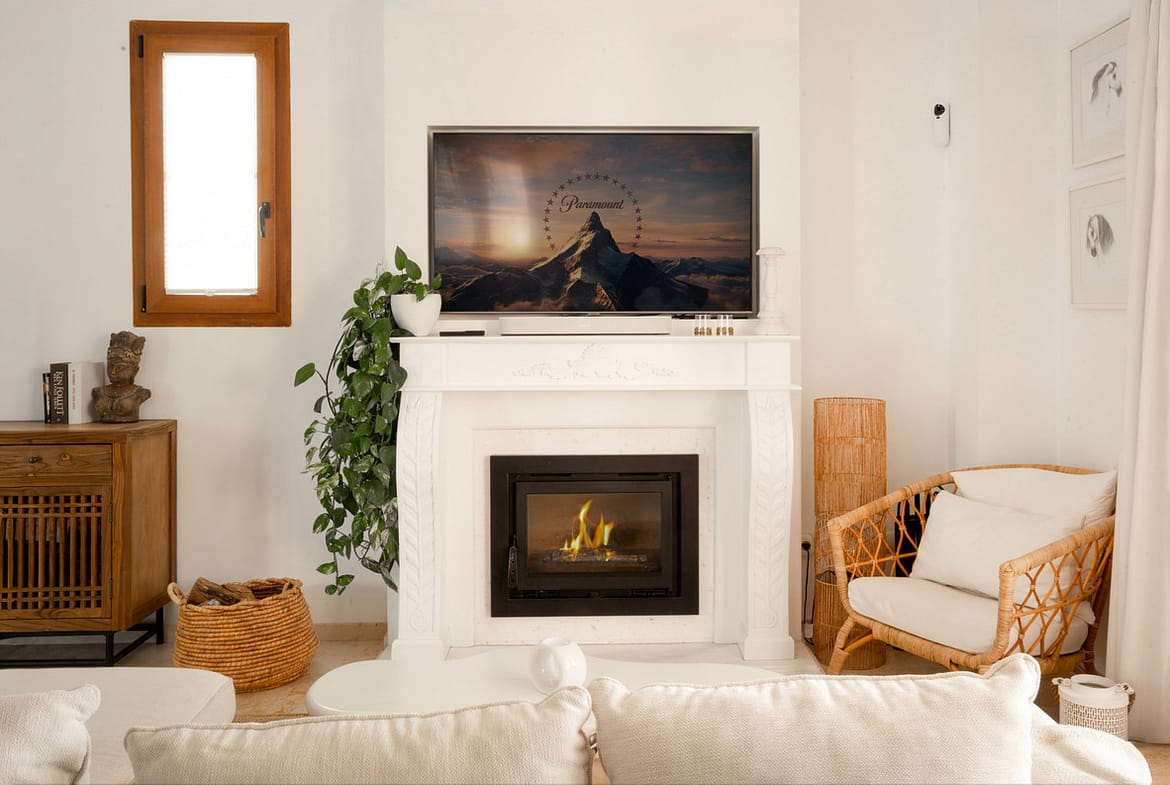 Upstairs, the property features three spacious bedrooms with direct balcony access, including a master suite with a private terrace and peaceful views over the surrounding hills.