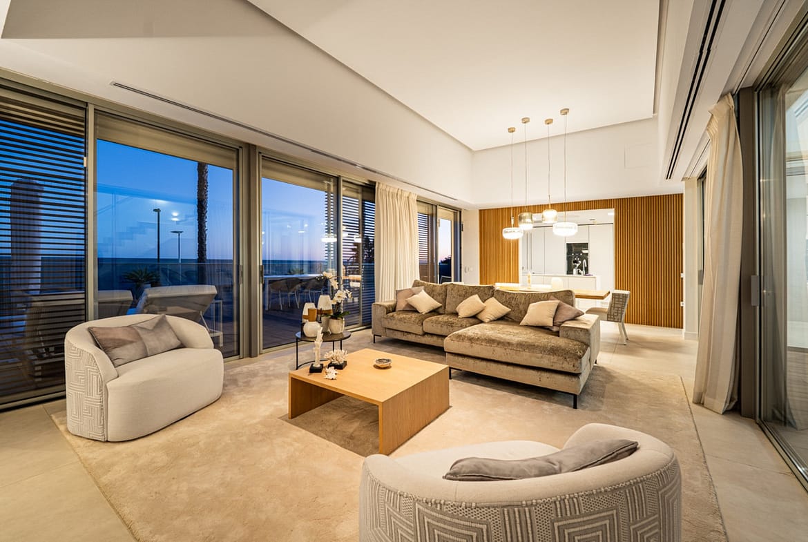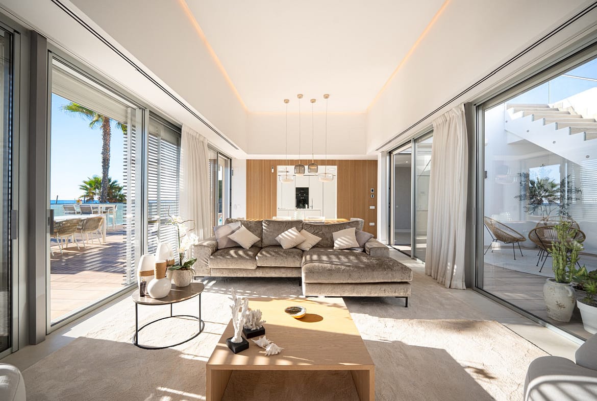 Casa Azul is a modern 4-bed, 3-bath beachfront villa in the exclusive “The Edge” complex in Estepona. The home offers open plan living and a bright interior with large windows. You have a private pool, an expansive terrace and direct beach access. The villa sits in a premium gated community with spa and gym facilities.