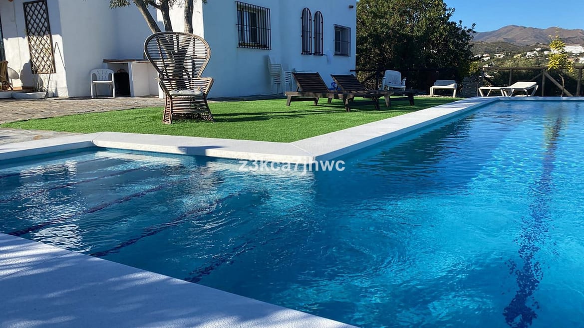 Built with a very solid structure on a 164 m2 footprint, this property, with its modern design and clean lines, is further enhanced by a sophisticated saltwater pool built in 2024. A separate entrance on the north side of the plot leads to a parking area with space for several vehicles. Features include: a valid tourist license, a separate holiday apartment, solar panels, fruit trees with at least nine varieties, sea views, and proximity to the AP7 motorway, Estepona, shops, and Laguna Village. This three-story house features several living rooms with fireplaces, two sunrooms, four bedrooms, four bathrooms, two open-plan kitchens, 42 m² of porches, 74 m² of terrace, and a storage room.
