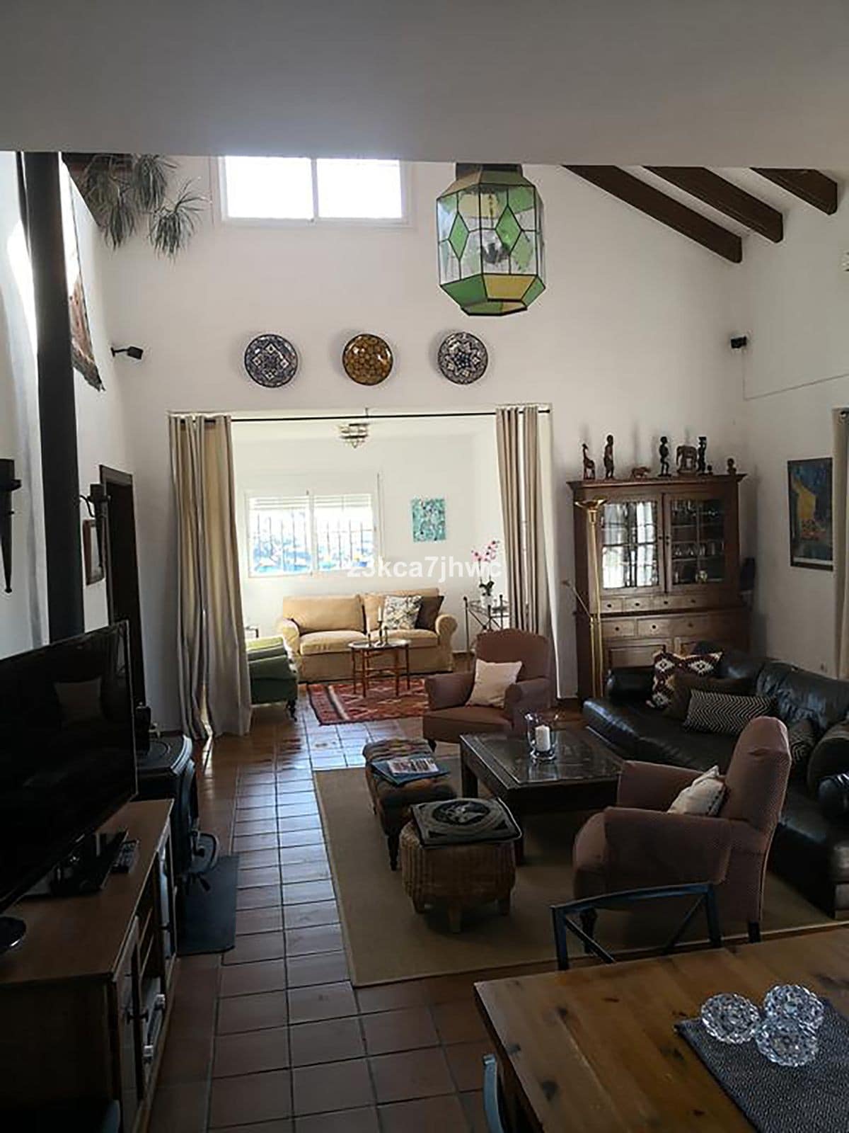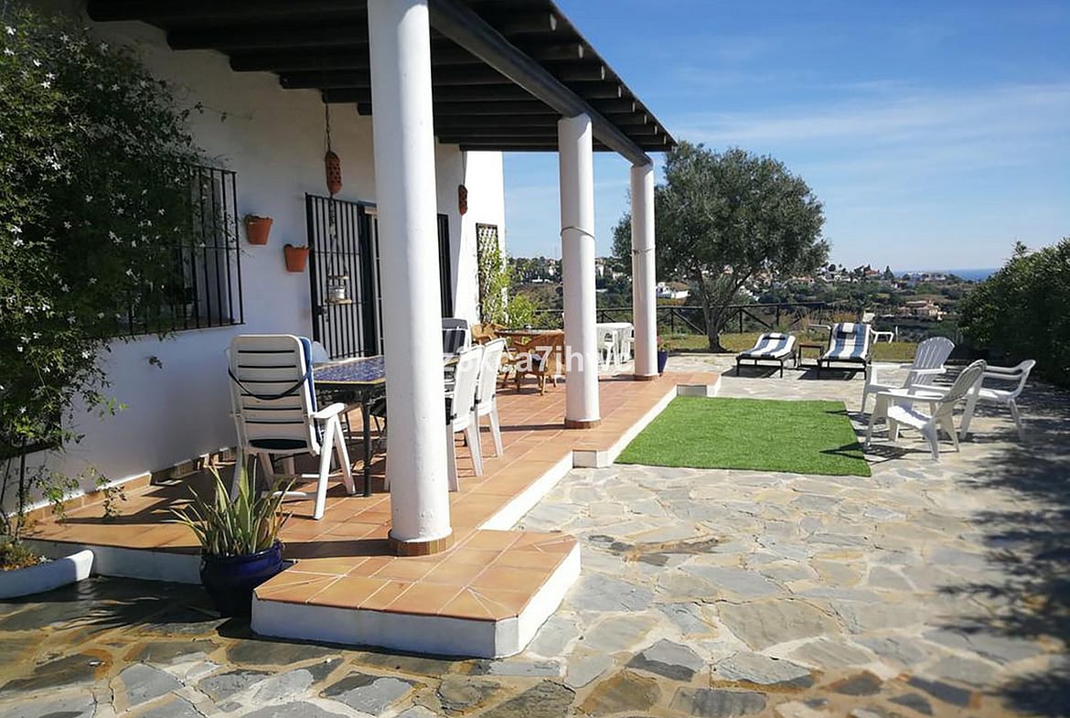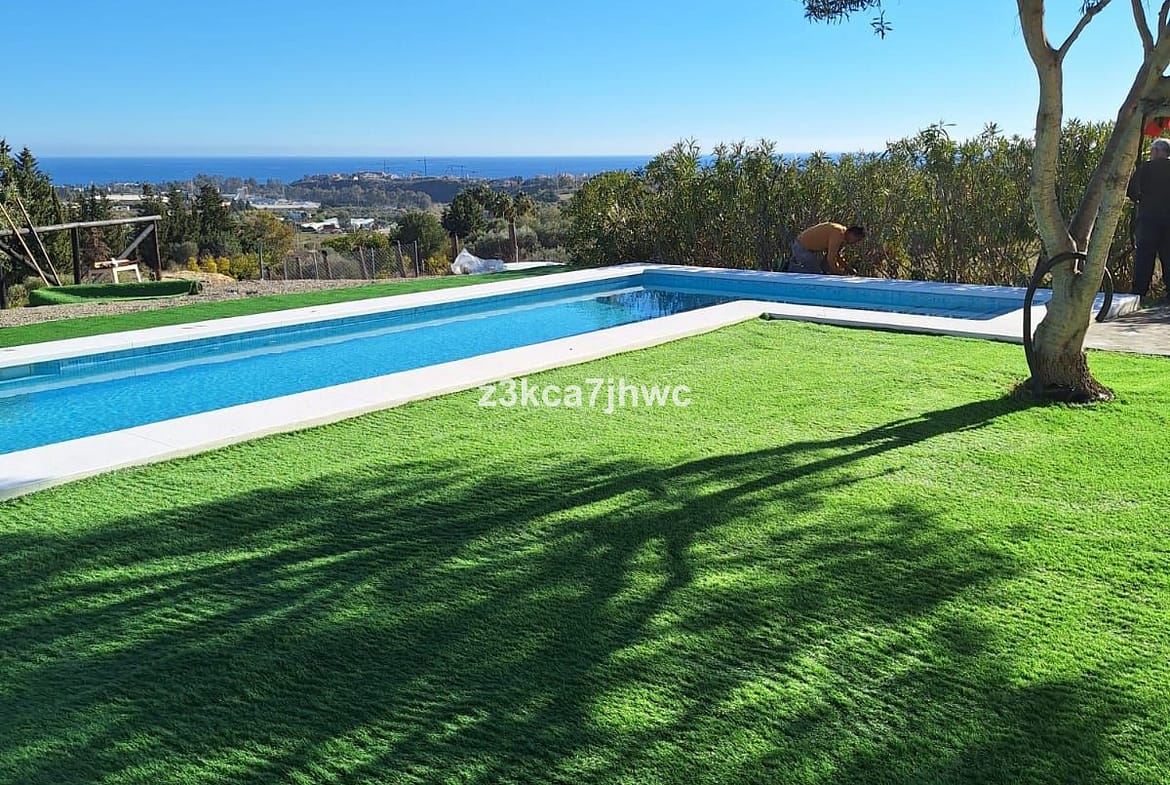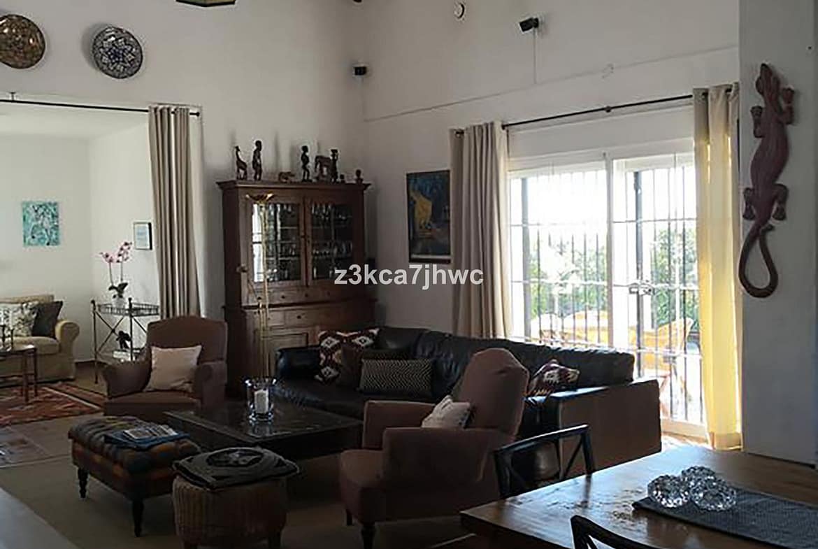 Just minutes from Estepona and surrounded by green areas with spectacular, unobstructed views of the Mediterranean Sea, this 4100 m2 estate features a magnificent 300 m2 detached house built on two floors plus a 105 m2 mezzanine with a kitchen, bathroom, and separate entrance, ideal for holiday rentals.
