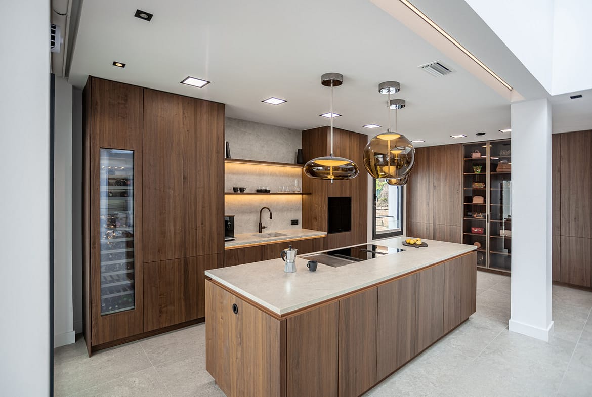 Set on a 765m² private plot, the villa offers generous interior and exterior spaces across three levels. On the main floor, you’ll find a top-of-the-line open-plan kitchen by Decodan, seamlessly connected to a spacious living area with a designer fireplace. Large integrated windows provide stunning, unobstructed views of the Mediterranean Sea from every angle. This main level also includes a complete en-suite bedroom with a private dressing area and a guest toilet.
