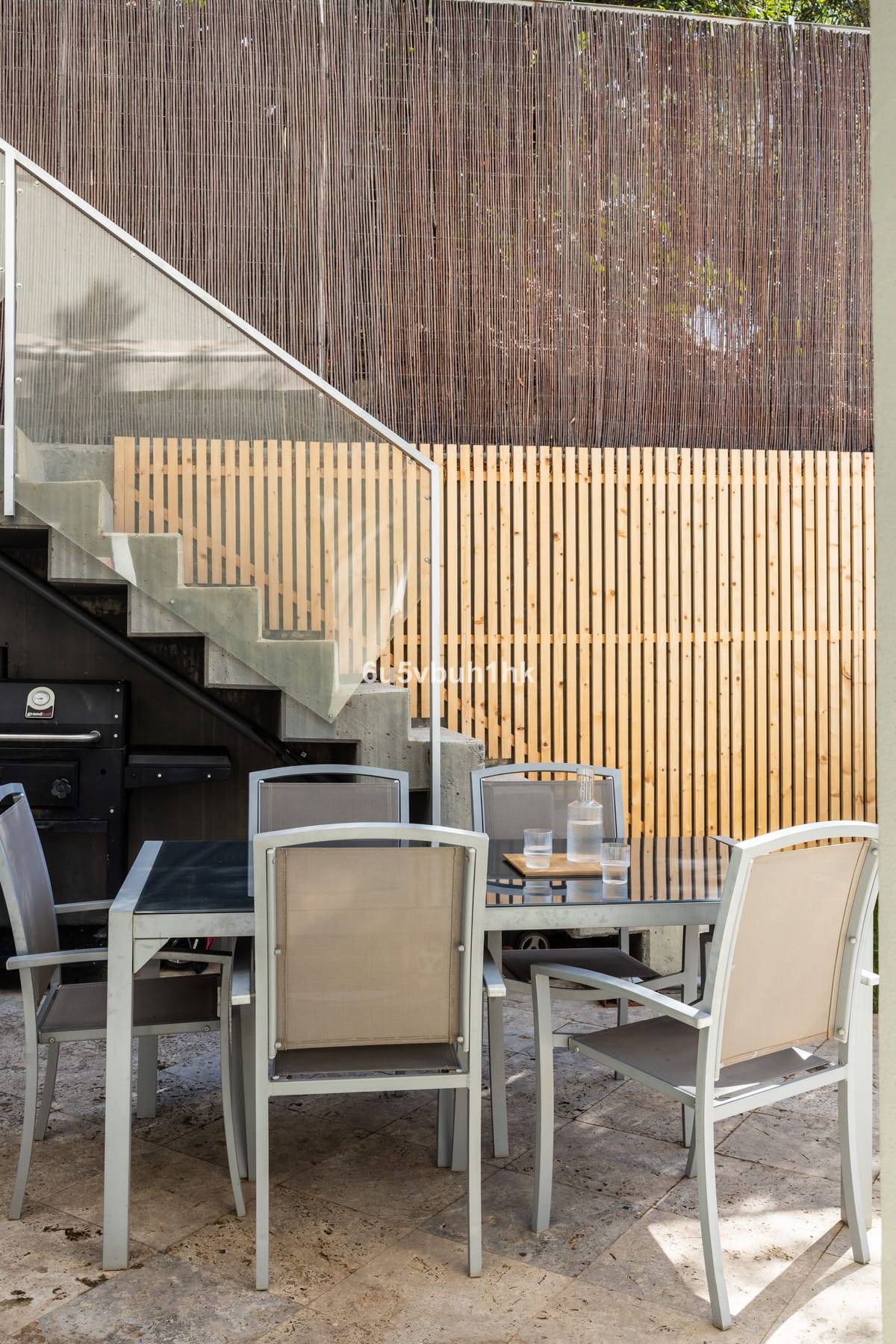 The house has four bedrooms, and its layout is designed to suit families, as the upstairs bedrooms are located close to each other. In this ready-to-move-in home, the interiors combine beautifully with the exteriors and terraces. The yard has its own plunge pool and a Finnish sauna, as well as direct access to the common infinity pool, which has wonderful panoramic views of the sea and the city.