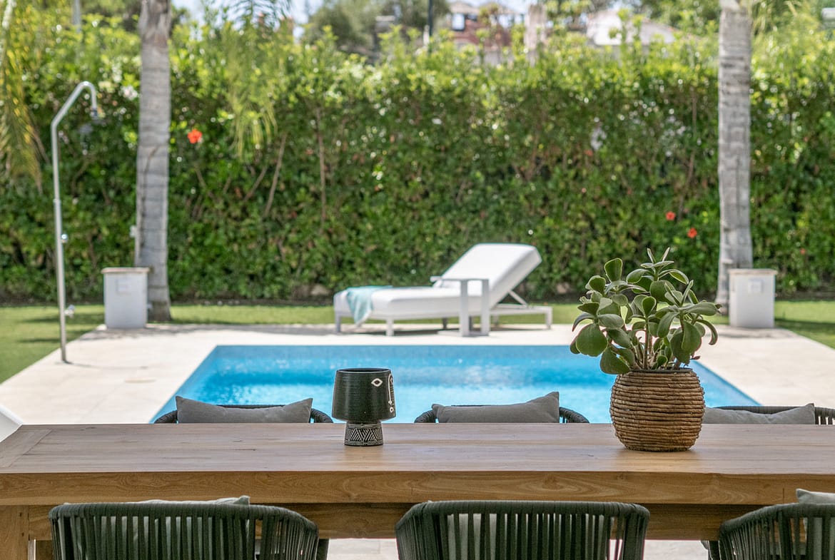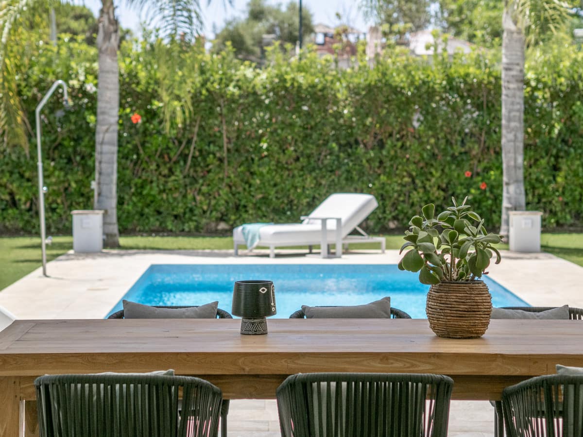Perfectly presented home in a prime position on a flat plot, in the beachside area of Casasola, close to Guadalmina Baja and walking distance to the beach. The home is an Ibiza style, detached house with private swimming pool.