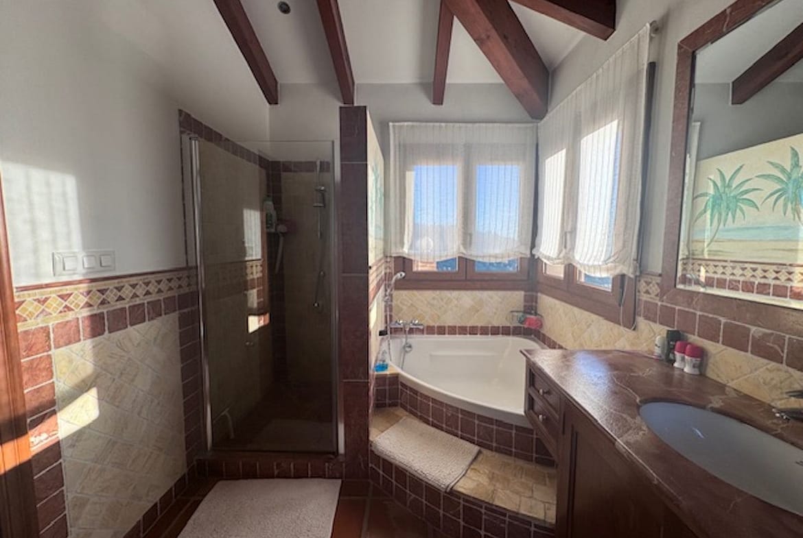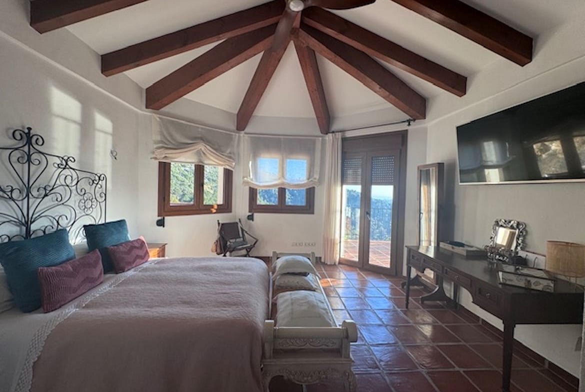 The first floor comprises of a large master bedroom with dressing room and en suite bathroom and a further one large bedrooms and bathroom. All bedrooms have access to a large wrap around terrace with open sea and mountain views.