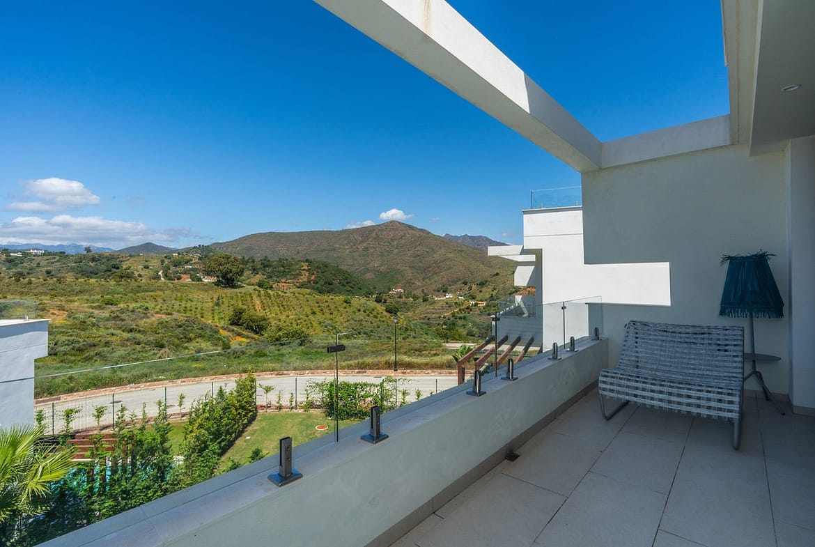 Fantastic luxury modern villa right in the heart of La Cala Resort. Here you have everything you ever asked for luminous, luxury , loveable, villa. Panoramic views from the Solarium whilst relaxing in the jacuzzi of the Golf, the undulated sourounding mountains, Countryside you can even o see down to the sea.
