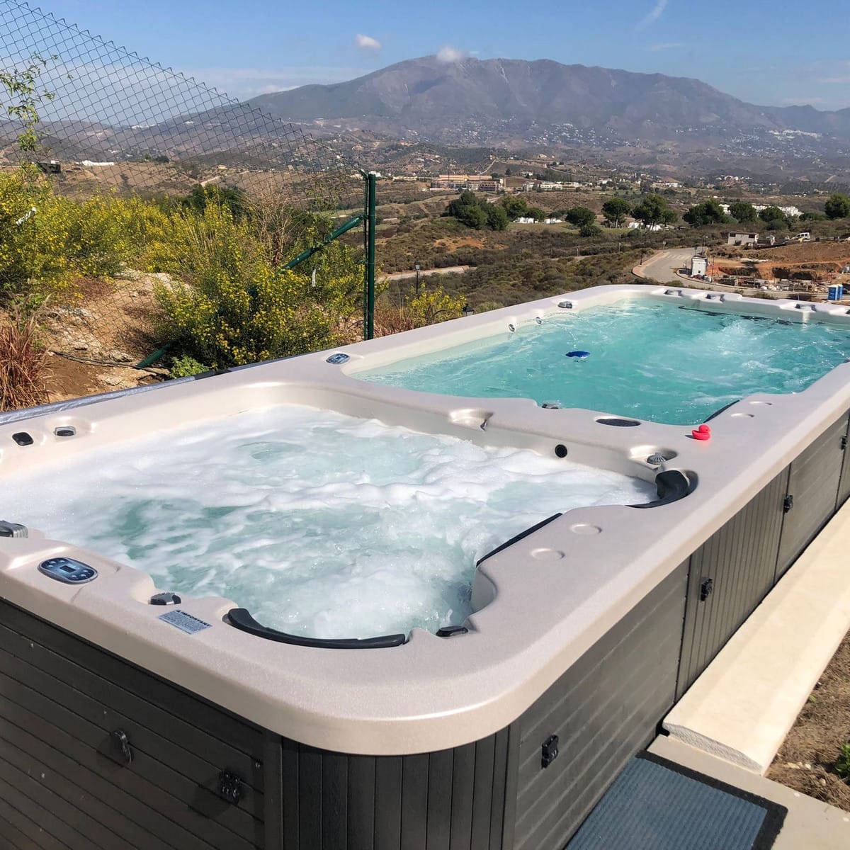 Outdoor living is equally impressive, with a private garden and jacuzzy with a portable pool but there are 2 projects to build a proper 15m x 4m swimming pool, and a terrace area spanning 41m² that offers panoramic views of the surrounding mountains and countryside. The property also includes a covered terrace, a ground floor patio, and an uncovered terrace, providing multiple spaces for relaxation and entertainment. A private garage adds to the convenience, while the presence of a barbeque and jacuzzi further elevates the outdoor experience. The villa’s location is ideal, being close to amenities such as shops, schools, and playgrounds, as well as proximity to the beach, golf courses, and the town centre.
