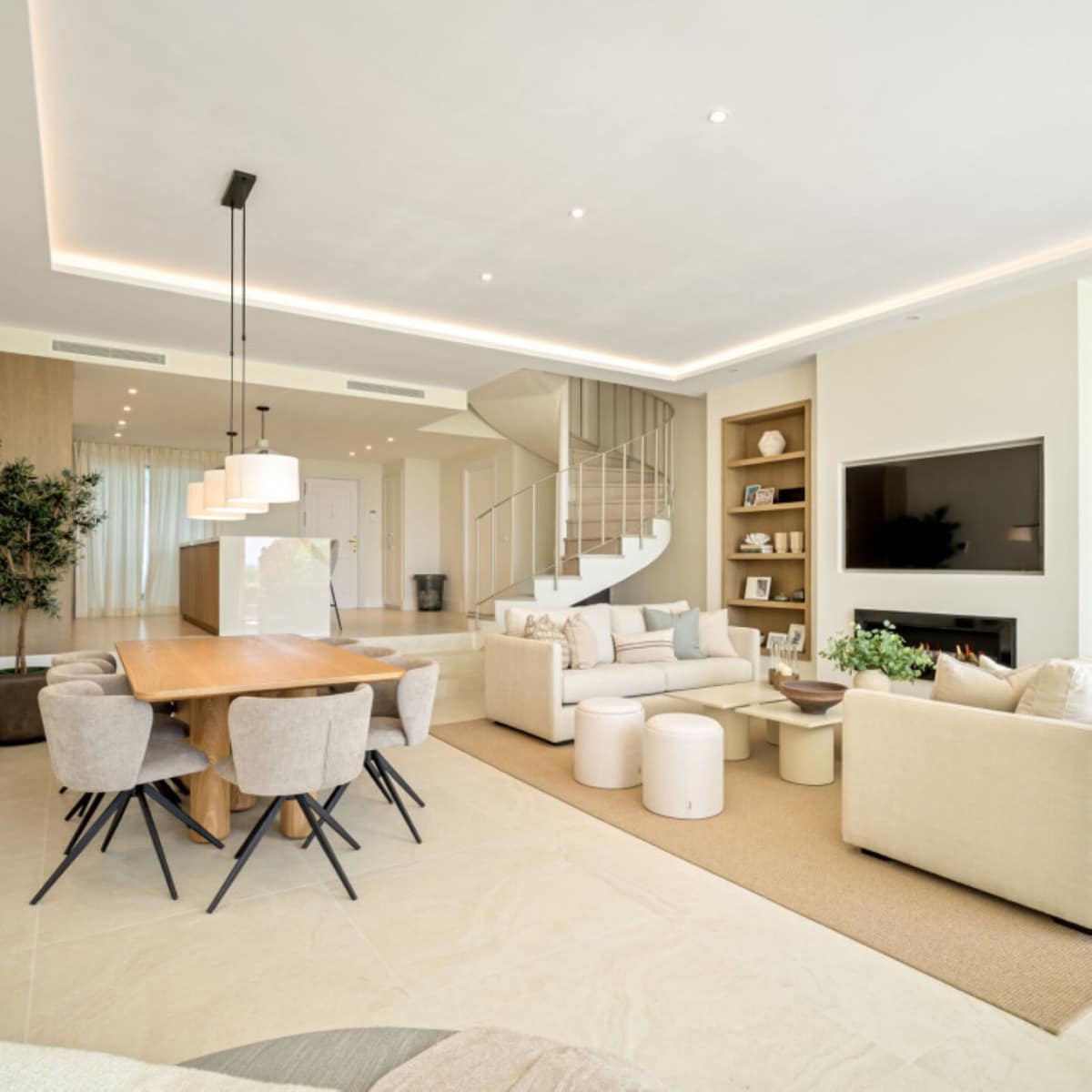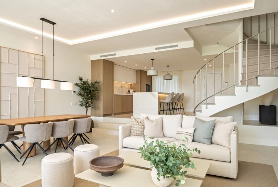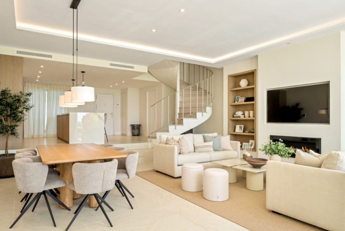 This exceptional 4-bedroom, 4-bathroom townhouse has been meticulously renovated to the highest standards and offers an unbeatable lifestyle in the sought-after area of La Quinta, Benahavís. Set frontline to the prestigious La Quinta Golf Course, the property enjoys breathtaking golf views, elevated sea vistas, and the serene beauty of the surrounding mountains and countryside.