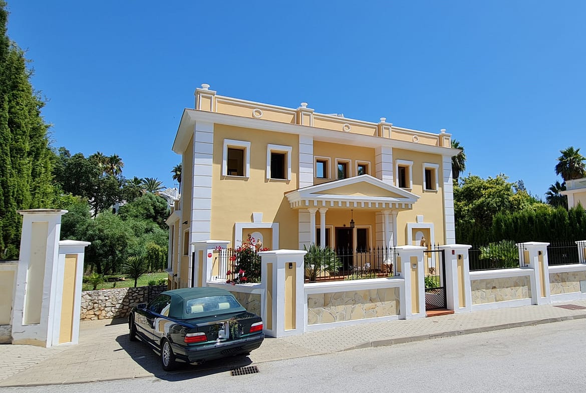 Luxury villa built on two floors plus a basement and a large garage for several cars, located in Hacienda Las Chapas, near Marbella and Malaga airport and Malaga city. Close to all services and near the beach! The villa is in perfect condition, offering four bedrooms en suite and a guest toilet. There is one bedroom en suite on the ground floor and three bedrooms with their own bathroom on the first floor. The villa has been completely renovated recently, offering an air conditioning system in all rooms and with underfloor heating in each bedroom. Large living room with access to the terrace and the garden with a pool. In addition a large and modern kitchen with all appliances. Terraces all around.