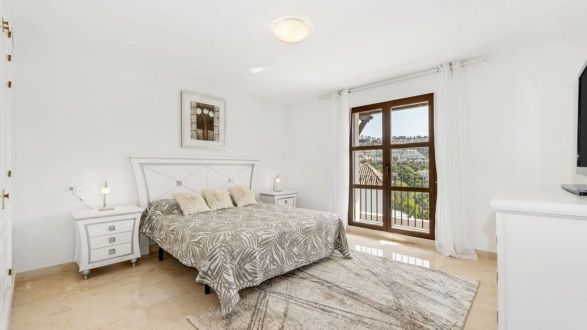 Step inside this Andalusian style villa and be greeted by a spacious entrance hall on the street level. The living and dining area on the first floor opens up to multiple terraces, outdoor spaces, and a sparkling swimming pool. The master bedroom with an en-suite bathroom is also conveniently located on this level. With high ceilings and incredible views of the golf course and mountains, this villa is truly a gem.