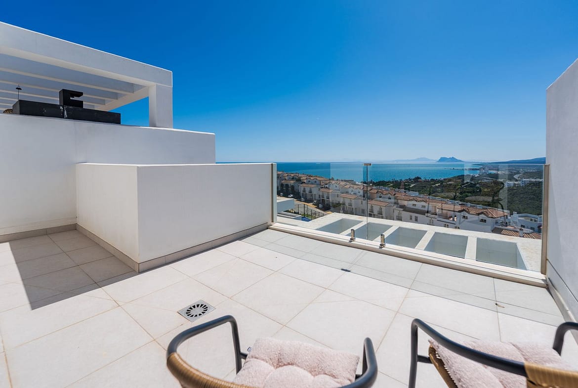 The townhouse project Golden View offers exclusive living comfort and breathtaking views of the sea as far as Gibraltar and the Atlas Mountains of Morocco. Here you can enjoy plenty of space for your individual lifestyle and a high degree of privacy. The location is ideal: surrounded by idyllic nature, you can reach the beach, shops and restaurants as well as the exclusive marina of Sotogrande in just a few minutes. The lively town of Estepona is around 15 minutes away.