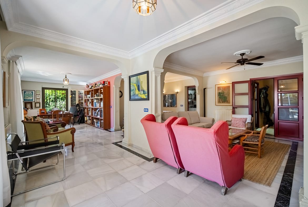 This charming Andalusian/Mediterranean style home is located in La Merced, one of Marbella’s most exclusive and peaceful residential areas. Its prime location places it just a short distance from the beach, the city center, and a wide range of amenities such as schools, supermarkets, pharmacies, and restaurants, allowing you to enjoy the convenience of having everything close by while maintaining the tranquility of a quiet neighborhood.