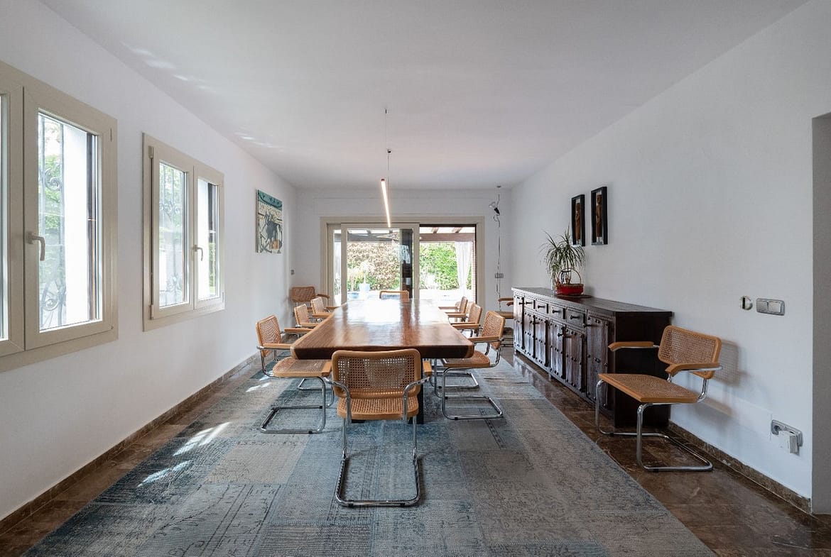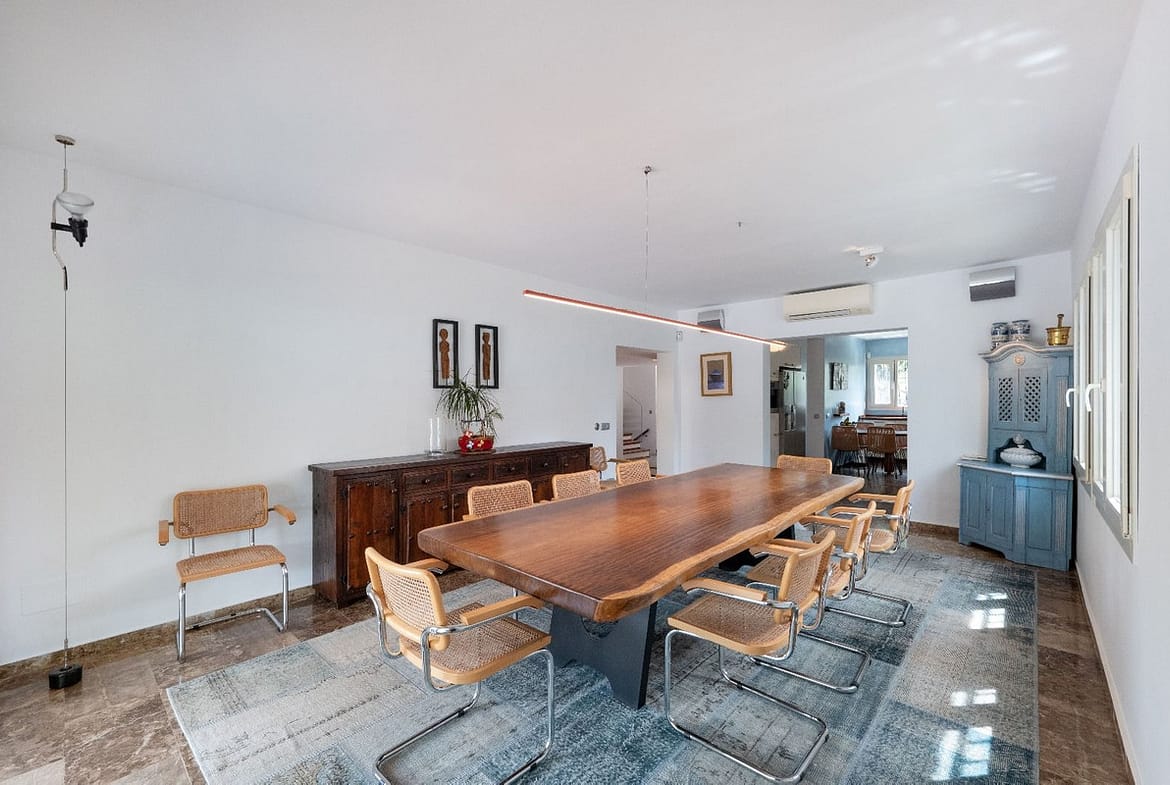 Relax in the charming chiringuito situated in the garden, ideal for outdoor dining and leisure. The property also includes a garage for one car and an additional outdoor parking space. The villa encompasses a generous total area of 400 m², providing ample space for luxurious living.
