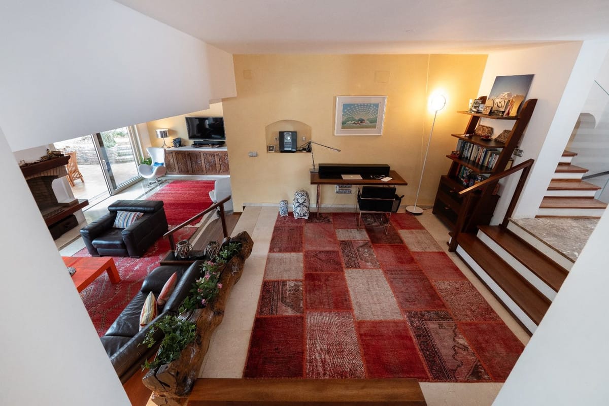 The villa boasts 4 spacious bedrooms, each featuring large built-in wardrobes and a private en-suite bathroom. Additionally, there is a guest bathroom on the ground floor. Enjoy a multi-level living room with a cozy fireplace and direct access to the beautifully landscaped garden, creating a perfect indoor-outdoor living experience.