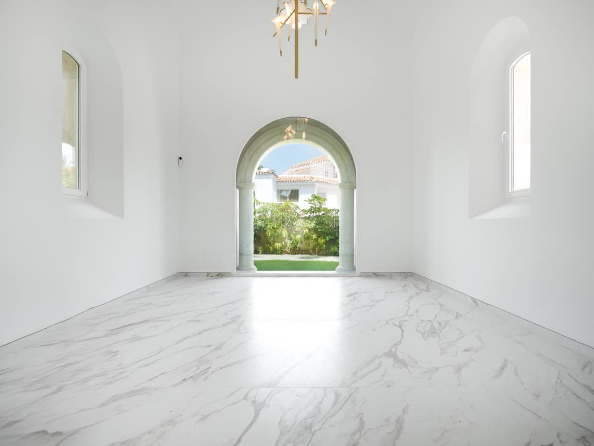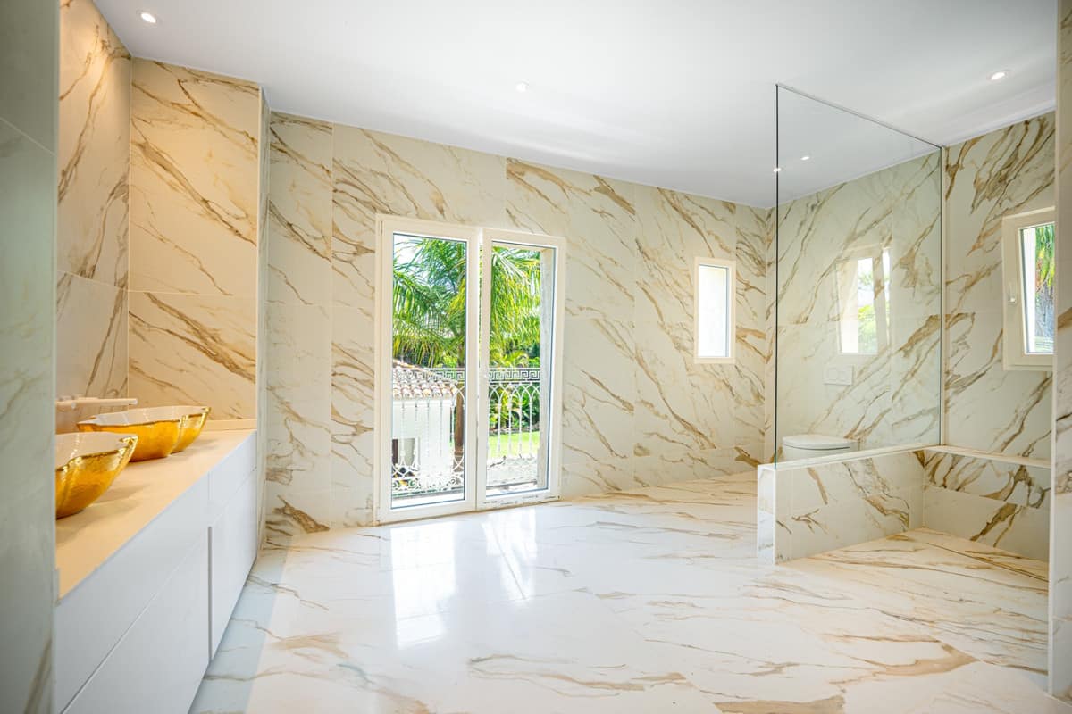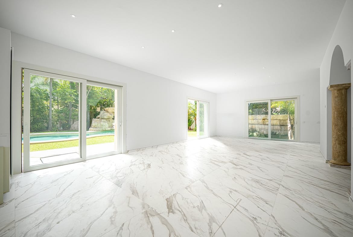 Outside, Villa Roma offers a private haven surrounded by tall palm trees. The pool, with its four waterfalls, creates a peaceful, spa-like atmosphere, while a stone terrace with a wood-burning barbecue makes entertaining easy. A fishlake beside the terrace adds to the villa’s charm and serenity. Every detail of Villa Roma has been designed with care, making it a rare opportunity to own a truly timeless property just moments from Marbella’s finest beaches.