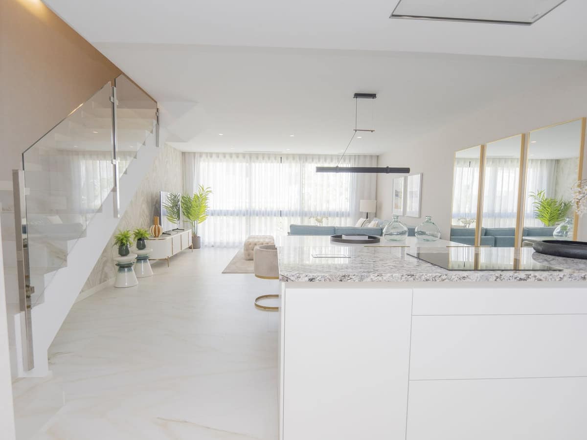 The luxury townhouse offers 177.5 sqm distributed over two floors, along with 59.10 sqm of private garden area. It has been fully decorated and furnished by the prestigious interior design company La Albaida.