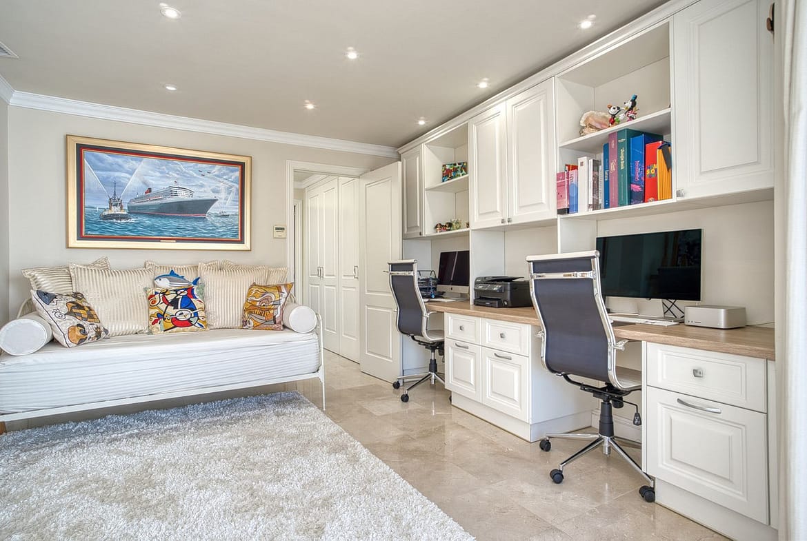 On the first floor, we find two large bedrooms, both with en-suite bathrooms. The master bedroom has its own outdoor terrace, where you can relax and enjoy the outdoors in complete privacy.