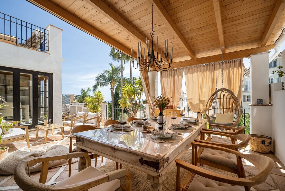 Nestled in the prestigious residential area of Marbella's Golden Mile, this beautifully newly renovated Andalusian-style townhouse seamlessly blends traditional architecture with contemporary Nordic interiors, offering a unique combination of charm, comfort and functionality.