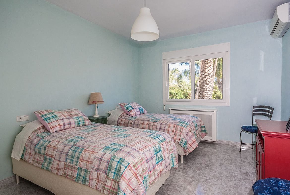 Furthermore the property is equipped with air conditioning, central heating and double glazing with shutters and mosquito nets, ensuring convenience and efficiency throughout the seasons. Outdoors, the property features a beautifully matured garden with automatic irrigation system, offering full privacy. A heated swimming pool with an electric cover, multiple terraces with various seating areas and a small outdoor kitchen create the perfect setting for Mediterranean living. Additional features include a private well with a 12.000 Liter water deposit and a garage for 2 cars with electric gates. A true gem in the sought-after Marbesa area, this villa combines charm, functionality, and luxury—ideal as a family residence or holiday retreat.